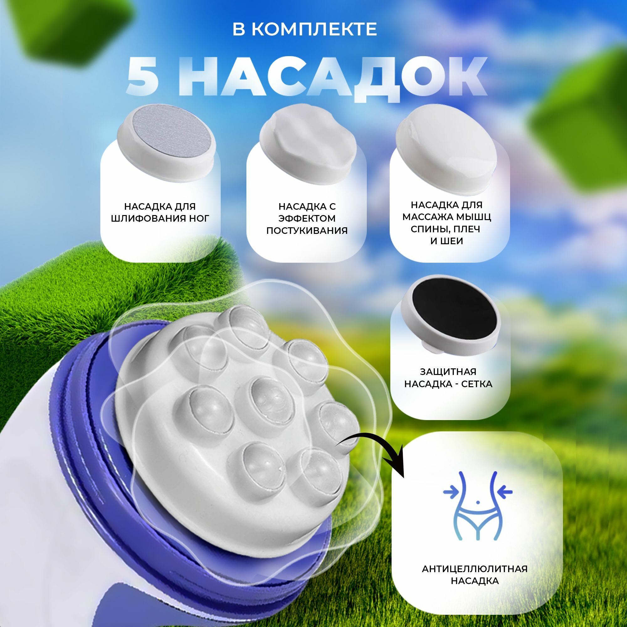 Массажер для шеи и плеч, массажер для тела, антицеллюлитный, вибромассажер, 5 насадок 1 231 ₽