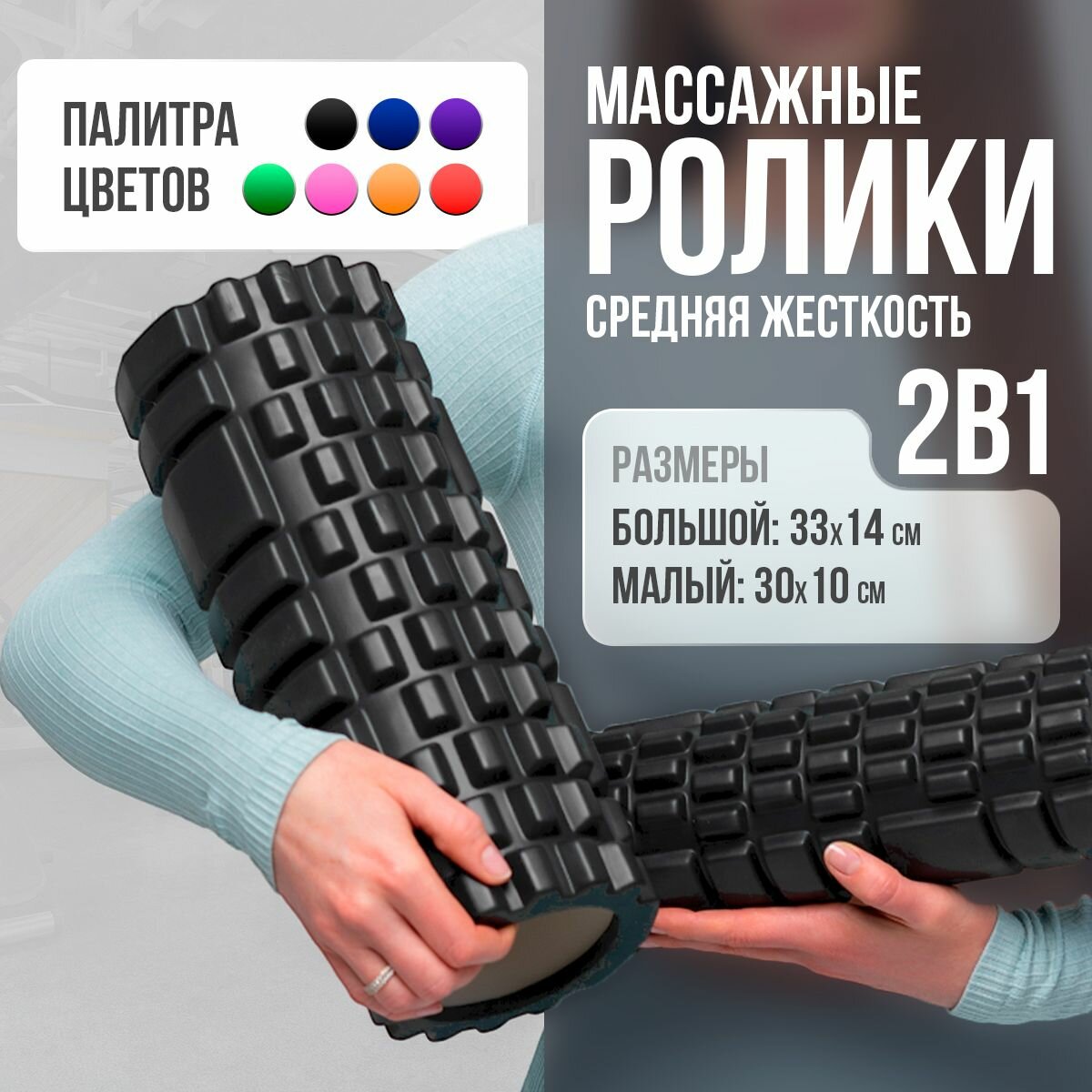 Валик для спины ShappaFit набор 2в1 , средней жесткости , 30х10см в 33x14см , цвет черный , мфр ролл , ролик массажный информация: