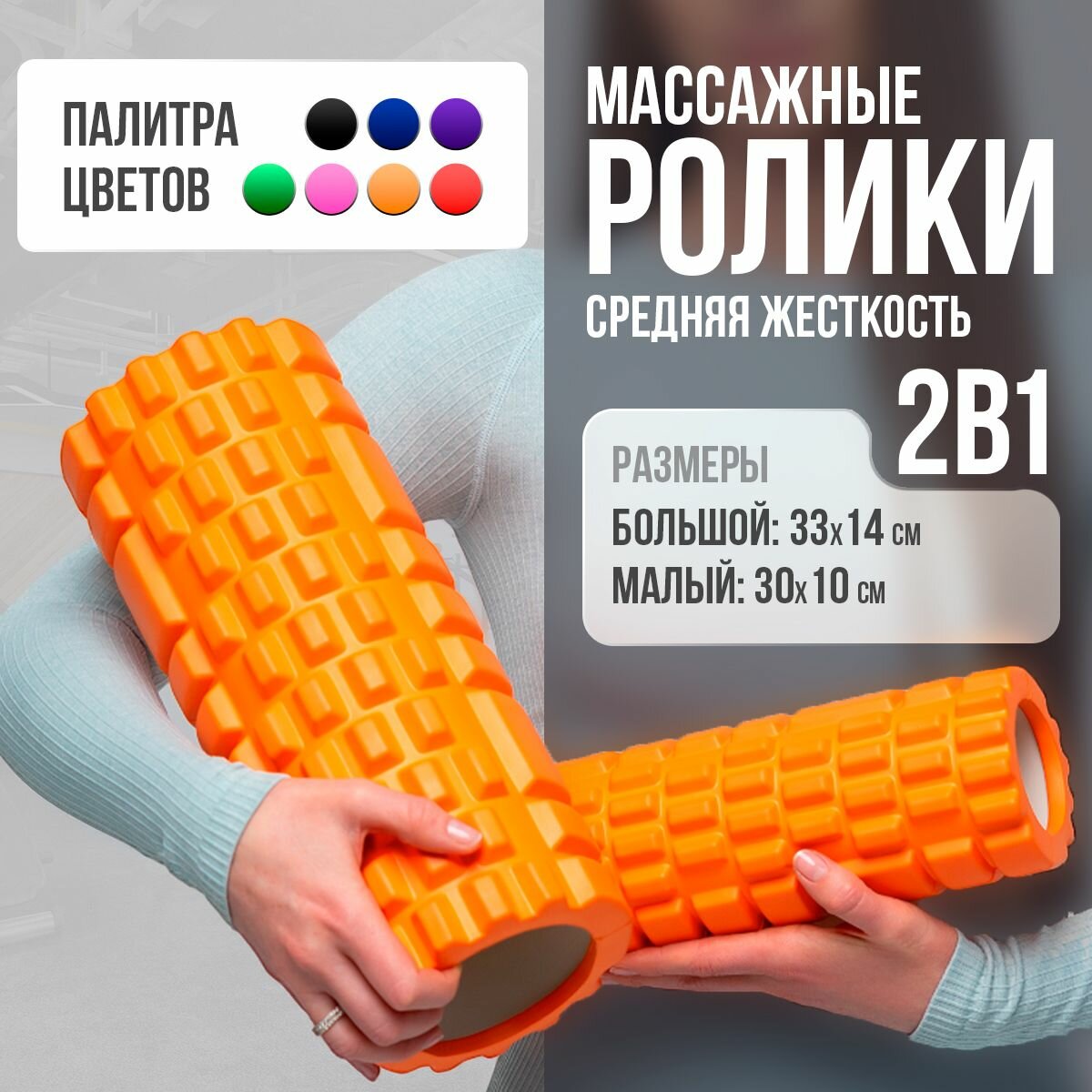 Валик для спины ShappaFit набор 2в1 , средней жесткости , 30х10см в 33x14см , цвет оранжевый , мфр ролл , ролик массажный информация: