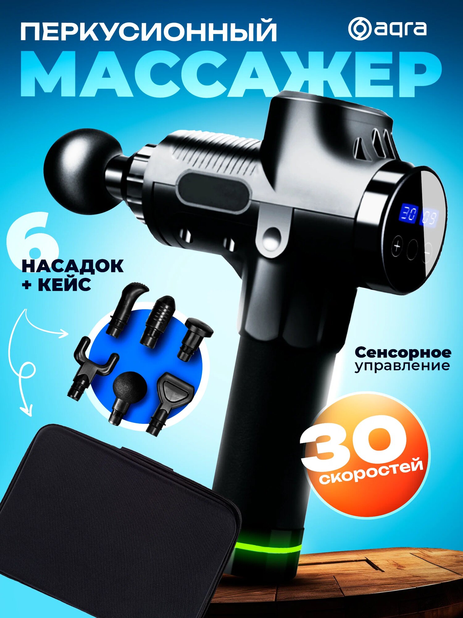 Перкуссионный вибрационный ударный электромассажер пистолет, до 3 300 уд/мин, 6 насадок информация: