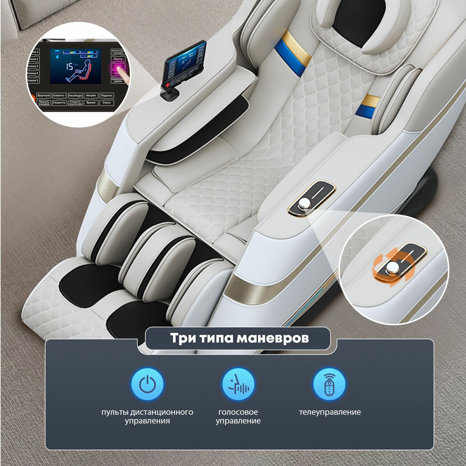 Массажное кресло электрический 106-L, Российский пульт дистанционного управления с большим экраном, подушка безопасности для всего тела, обогрев талии и обогрев ног информация: