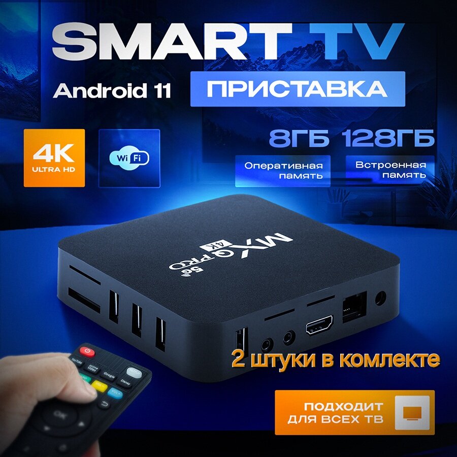 10 цен на Приставка SMART TV для телевизора, ANDROID 11, 8 Гб оперативная память, 128 Гб встроенной памяти, 8/128, комплект из 2х штук