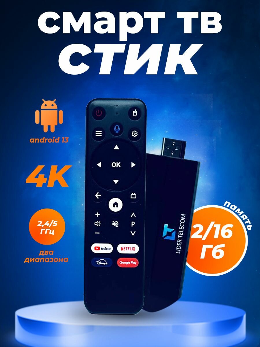 | Дополнительная информация | Стик для Smart TV - это современное компактное устройство, которое работает на операционной системе Android 13. С поддержкой Bluetooth и 4K. |
