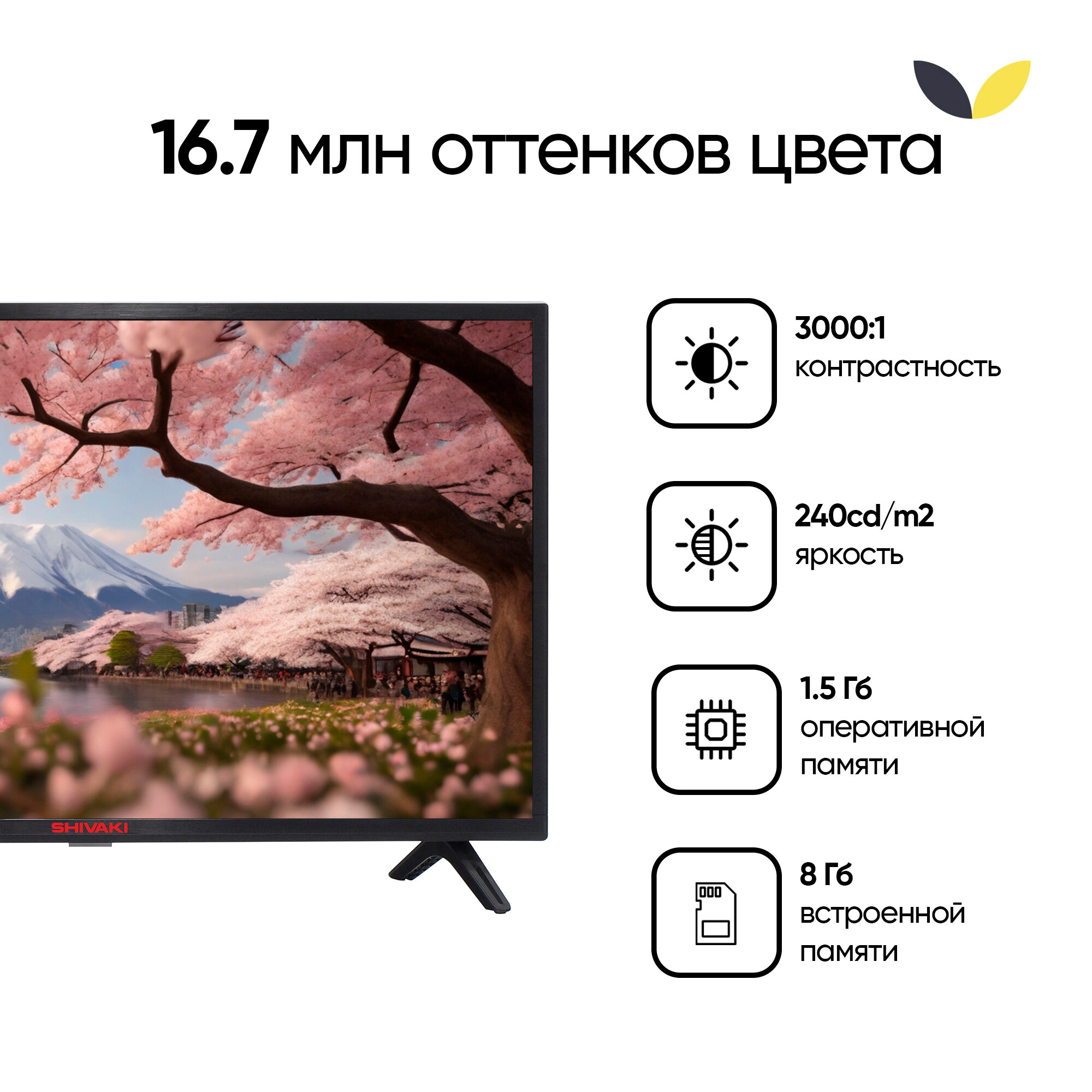 Телевизор SHIVAKI S32KH5500 32'' HD Smart TV, HDR10, BT 5.0, Wi-Fi 2.4-5 ГГц, черный информация: