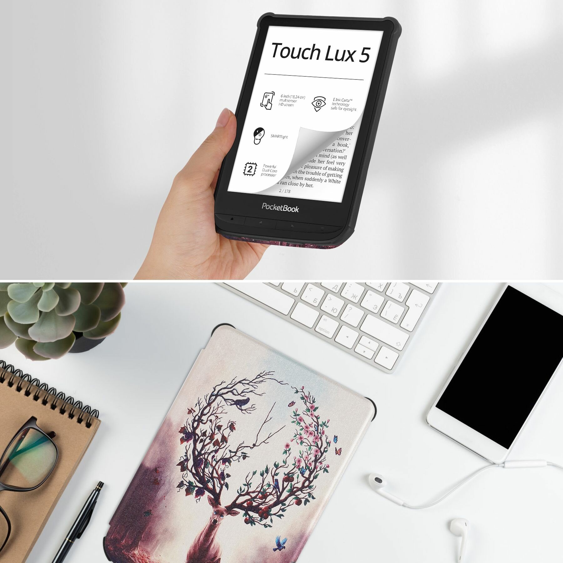 Отзывы на Чехол-книжка для Pocketbook 606 / 616 / 617 / 618 / 627 / 628 / 632 / 633, Qicai deer