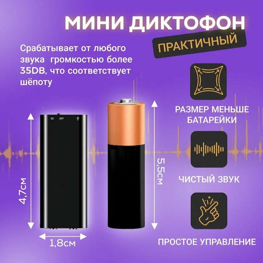 Отзывы на Диктофон мини до 90 часов записи, с наушниками и датчиком звука.