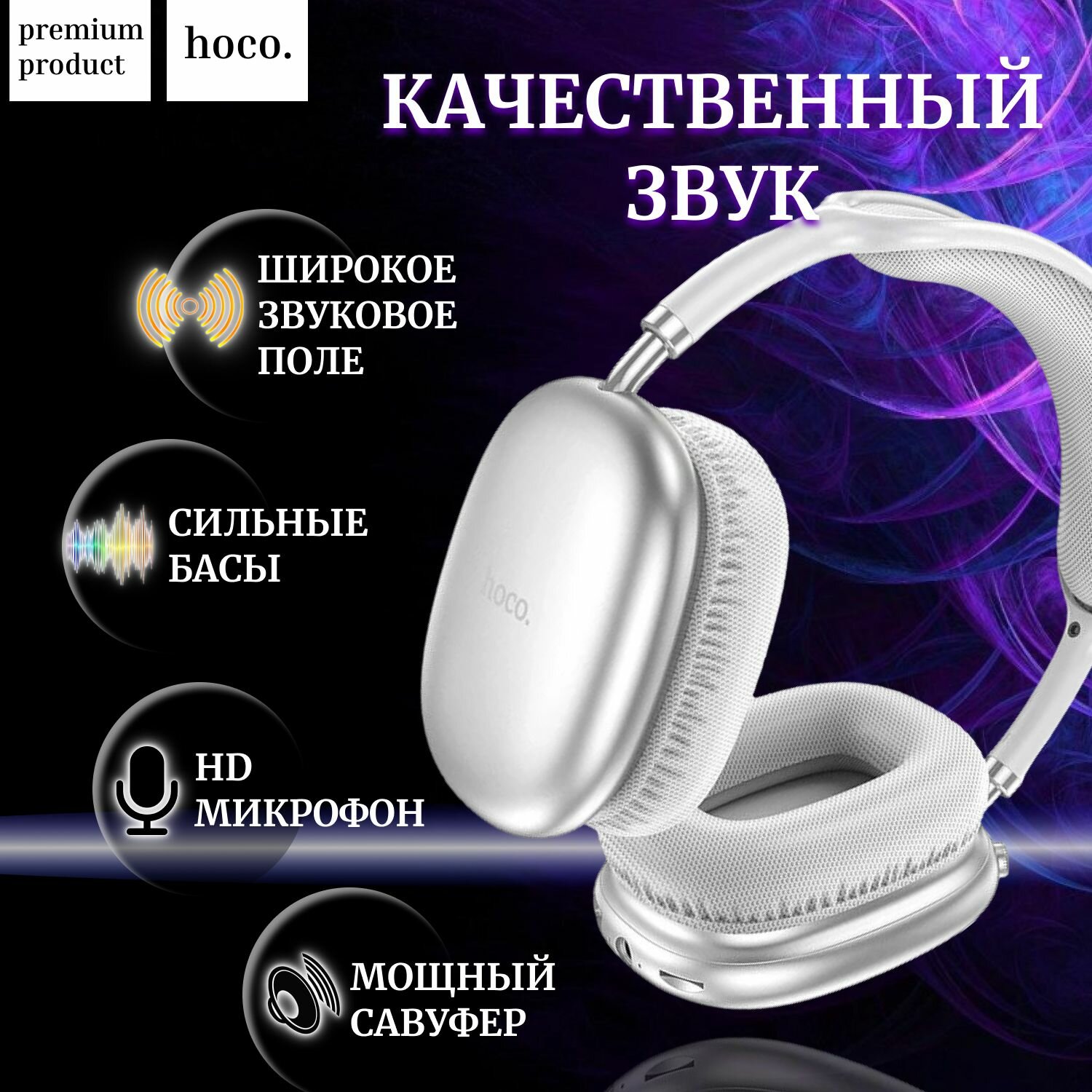 10 цен на Наушники беспроводные с микрофоном hoco W35 AIR, накладные, Bluetooth, 3.5 мм, серебристый