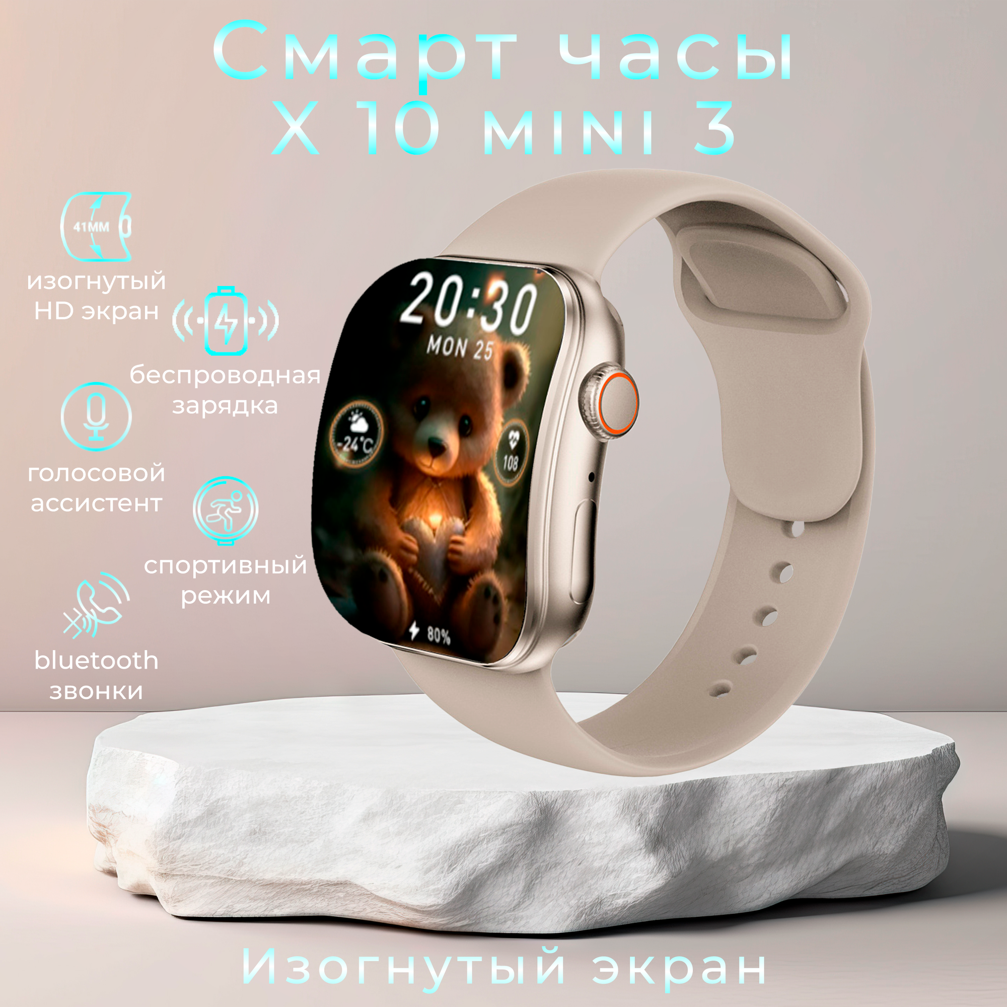 Умные смарт часы с изогнутым экраном, watch 10, X10 MIni3, 41 мм с NFC и беспроводной зарядкой, золотые информация: