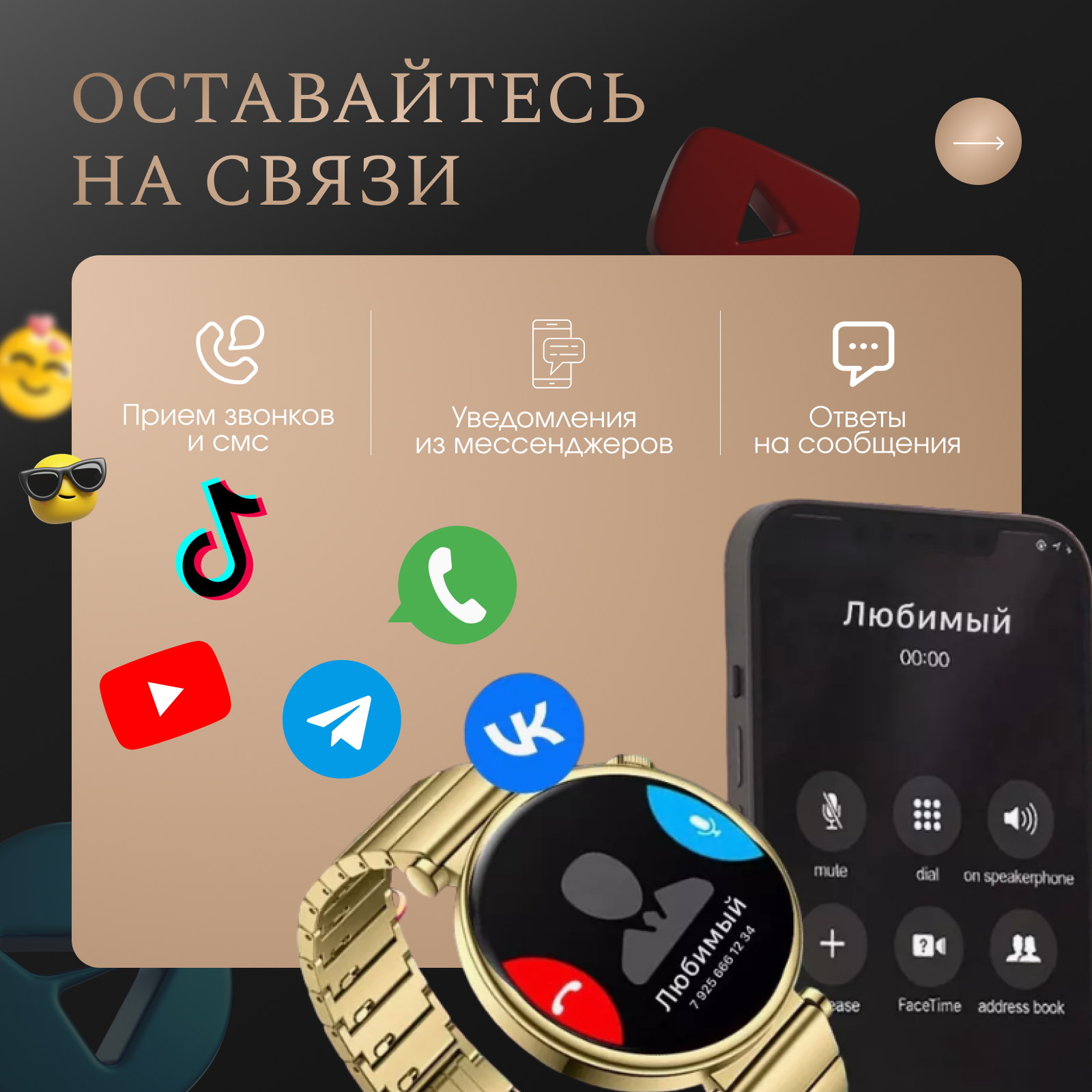 Smart watch gold | Умные часы золотые + про наушники