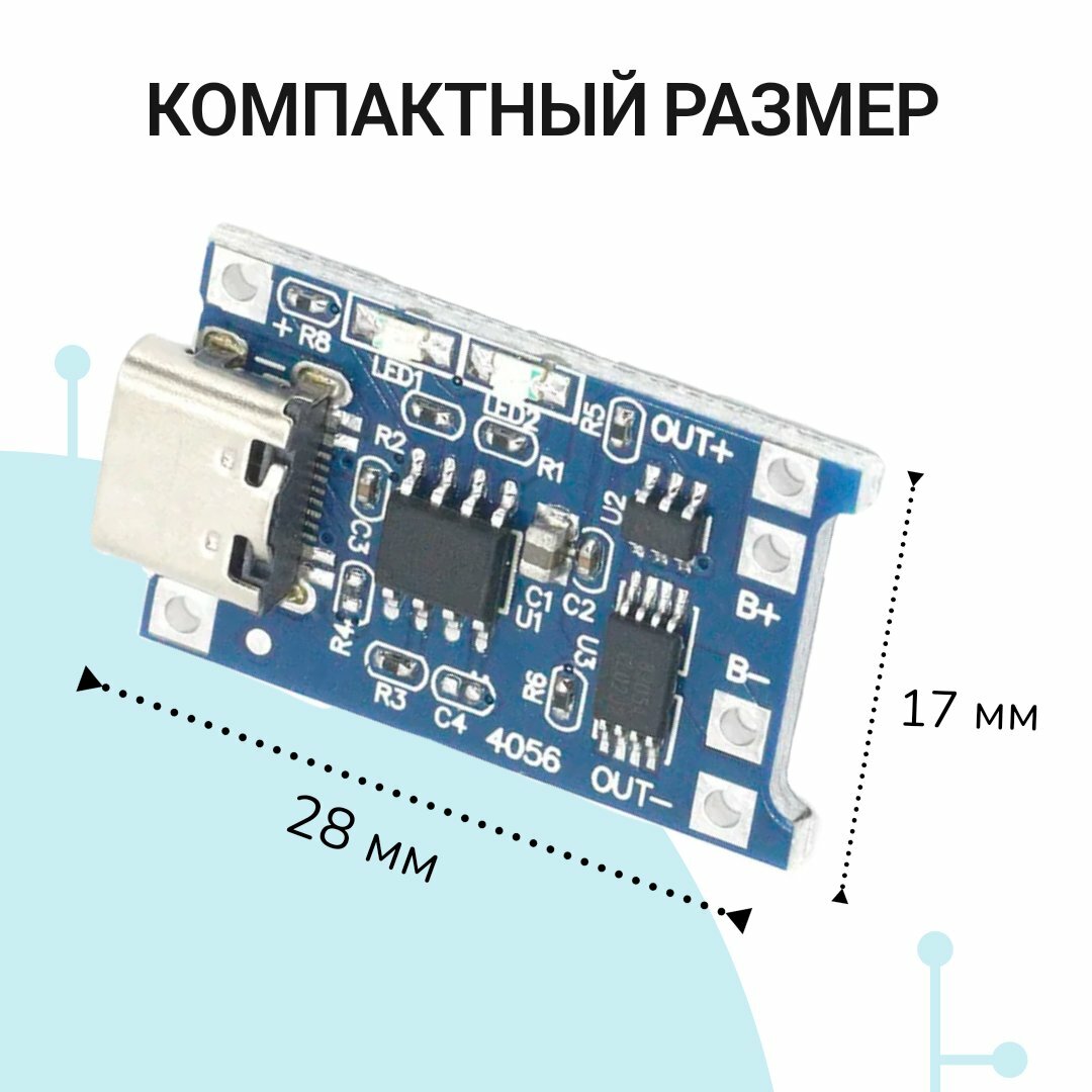 10 цен на Электронный модуль, микросхема TP4056 для зарядки литиевого аккумулятора 18650 1A с защитой с TYPE-C портом.