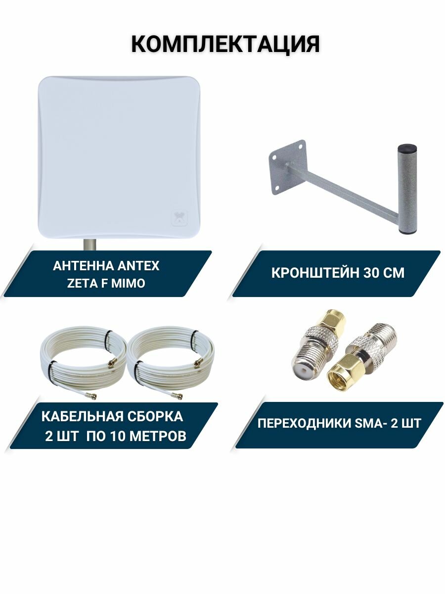 Усилитель интернет сигнала 2G/3G/WiFi/4G антенна ZETA F MIMO 20 dBi -F + кабель + кронштейн + переходники SMA информация:
