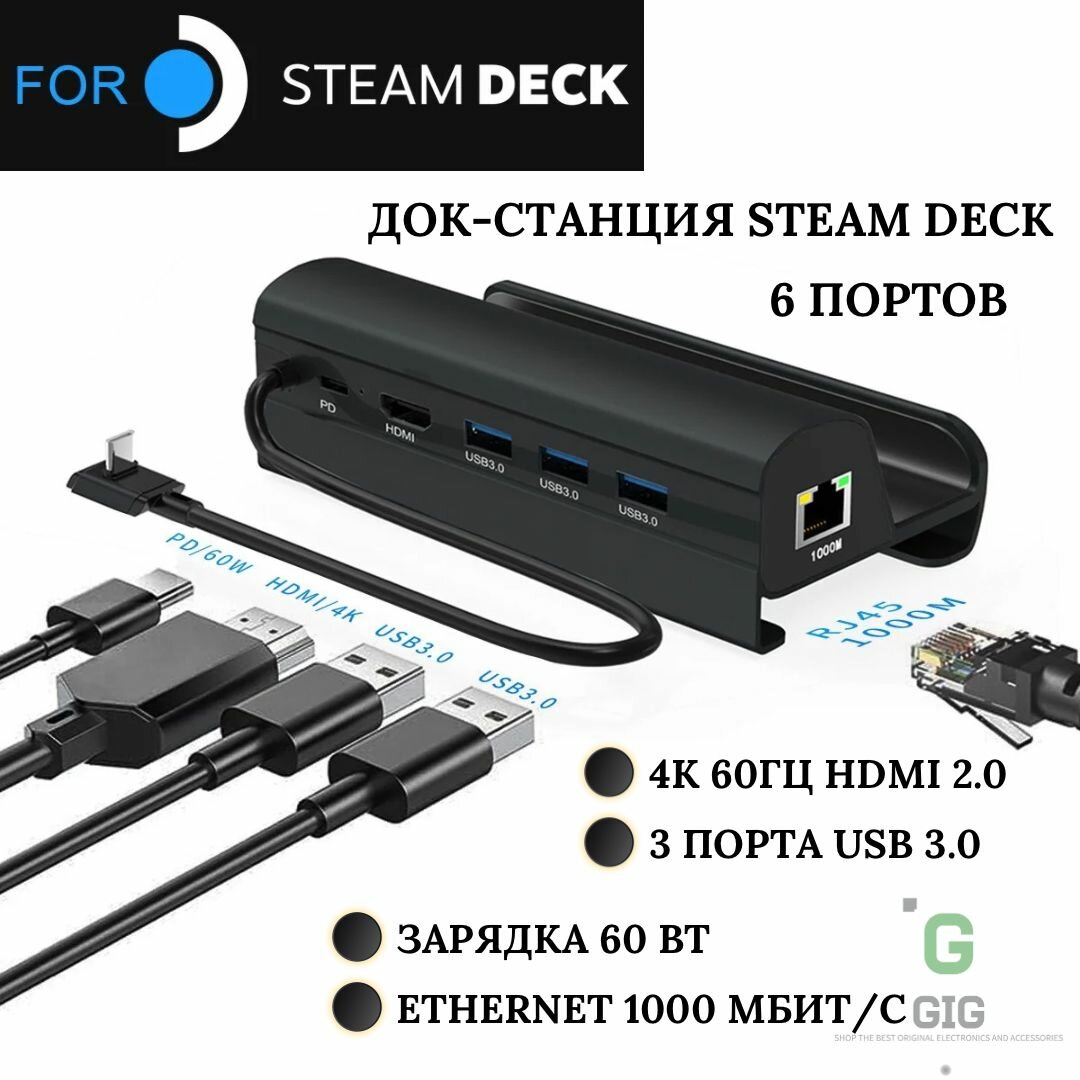 Отзывы на Док-станция для Steam Deck, подставка-зарядное устройство 6 в 1 металлическая-черная, 4К 60 ГЦ+LAN