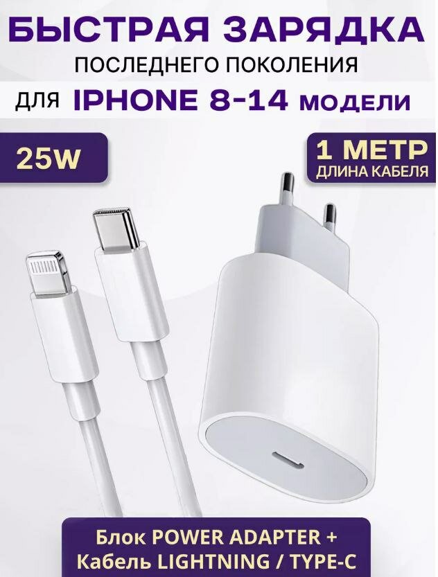 Быстрое зарядное устройство 25W для iPhone, iPad, Air Pods с кабелем/Белый информация: