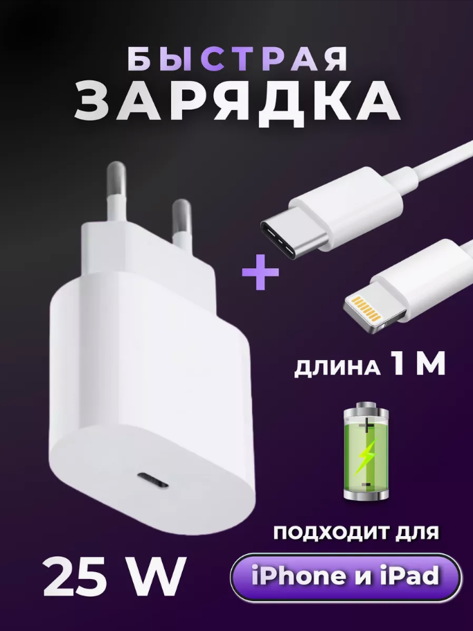 10 цен на Быстрое зарядное устройство 25W для iPhone, iPad, Air Pods с кабелем/Белый