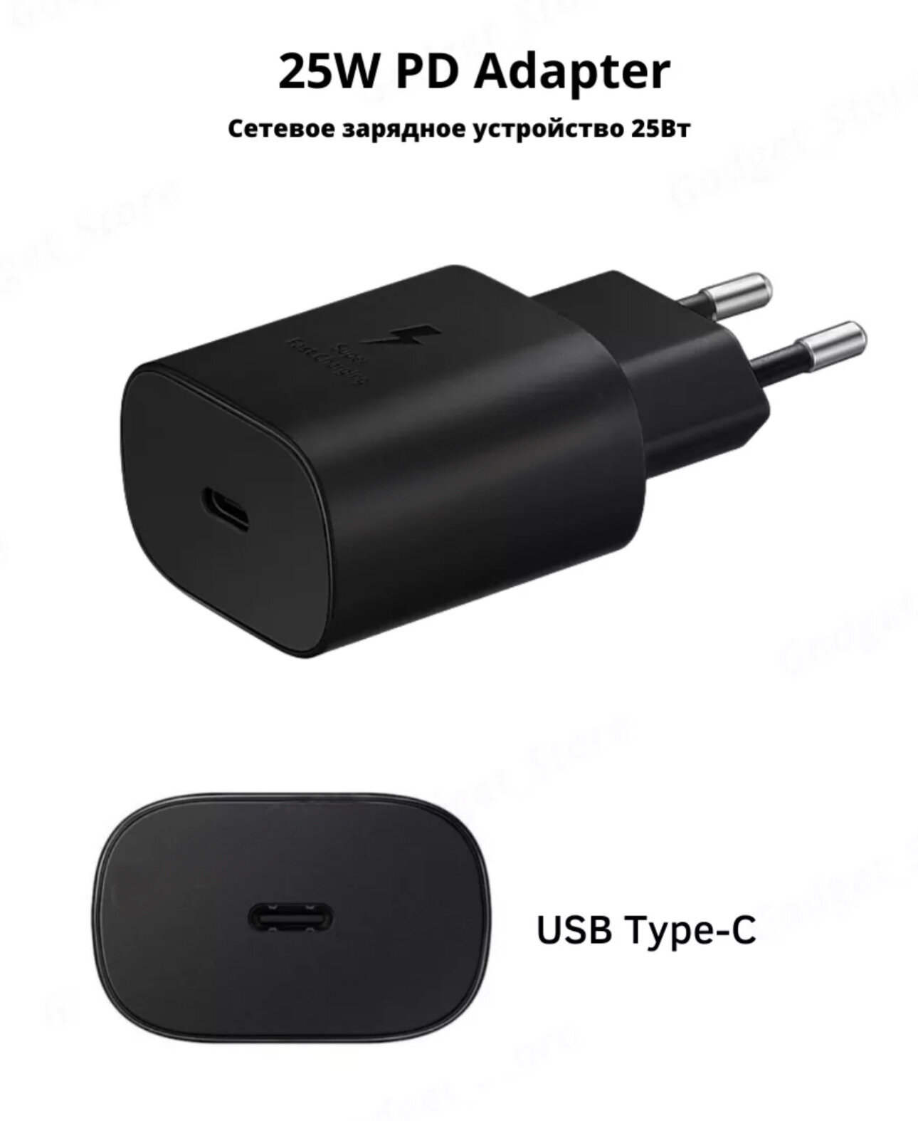Отзывы на Адаптер для Samsung 25W USB-C + Кабель Type-C (5A), быстрая зарядка, черный
