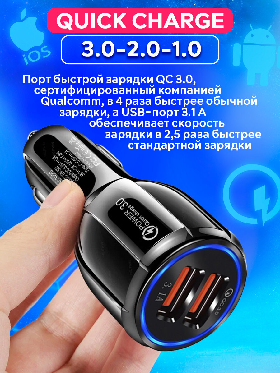 Автомобильное зарядное устройство для телефона 6А, Быстрая зарядка, зарядка для iphone, зарядка в прикуриватель информация: