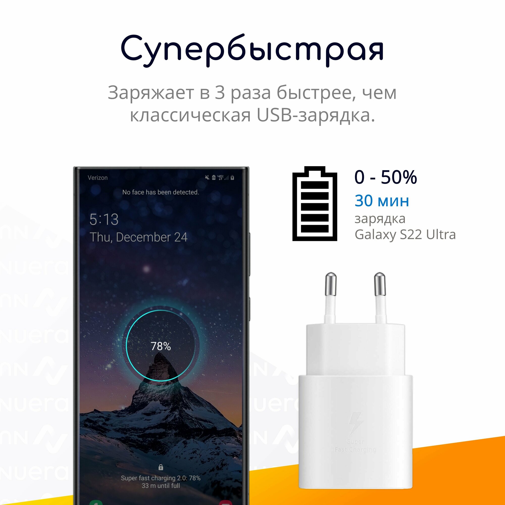 Супер быстрая зарядка для Samsung, USB-C, 25W (3А), черная / Original drop 759 ₽