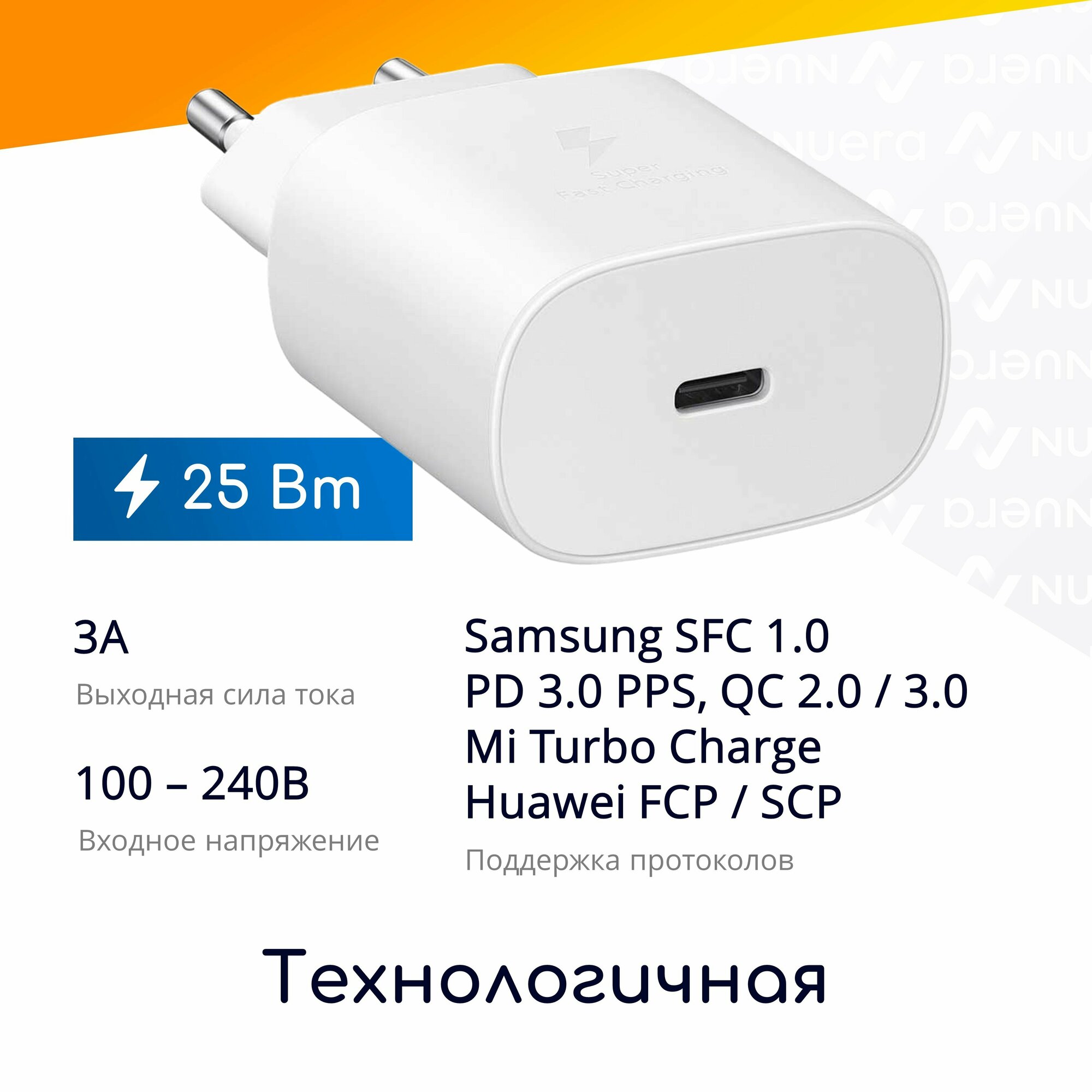 Супер быстрая зарядка для Samsung, USB-C, 25W (3А), белая / Original drop информация: