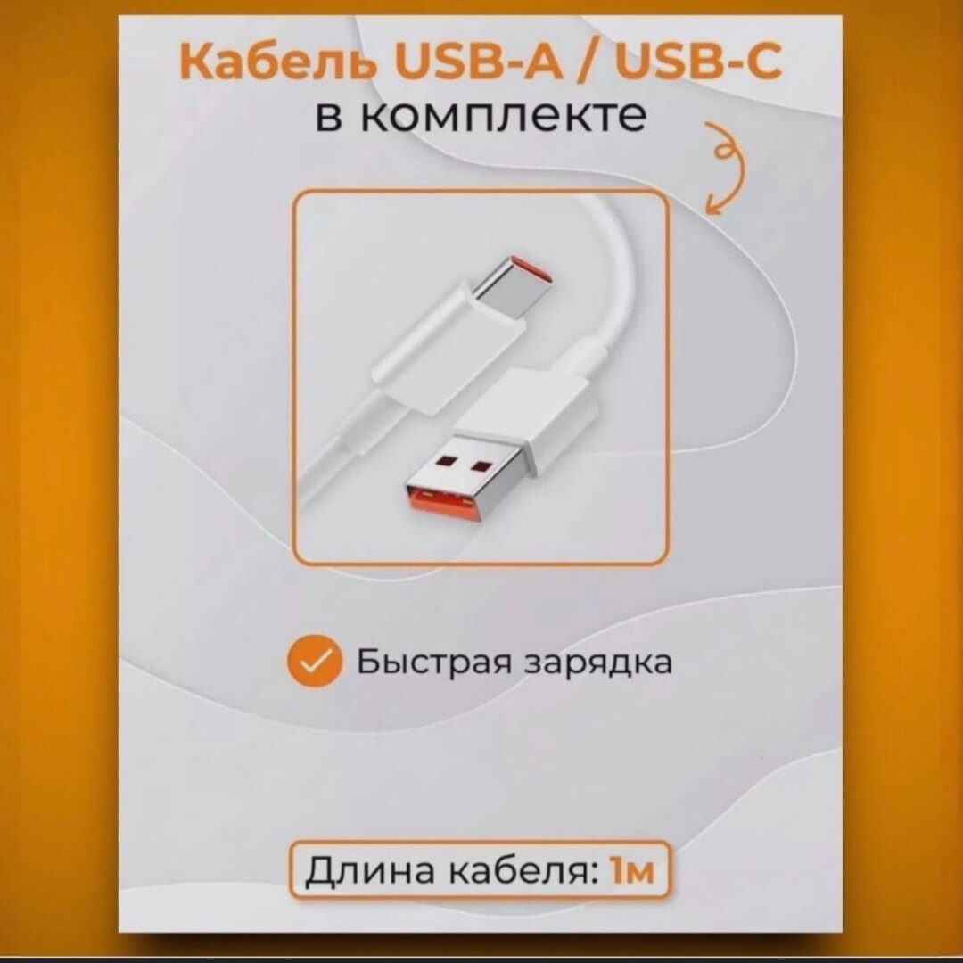 Зарядное устройство для телефона Xiaomi / Oppo / Redmi / Samsung и других моделей (быстрая зарядка Сяоми 35W) для смартфона + кабель 6A USB type-c информация: