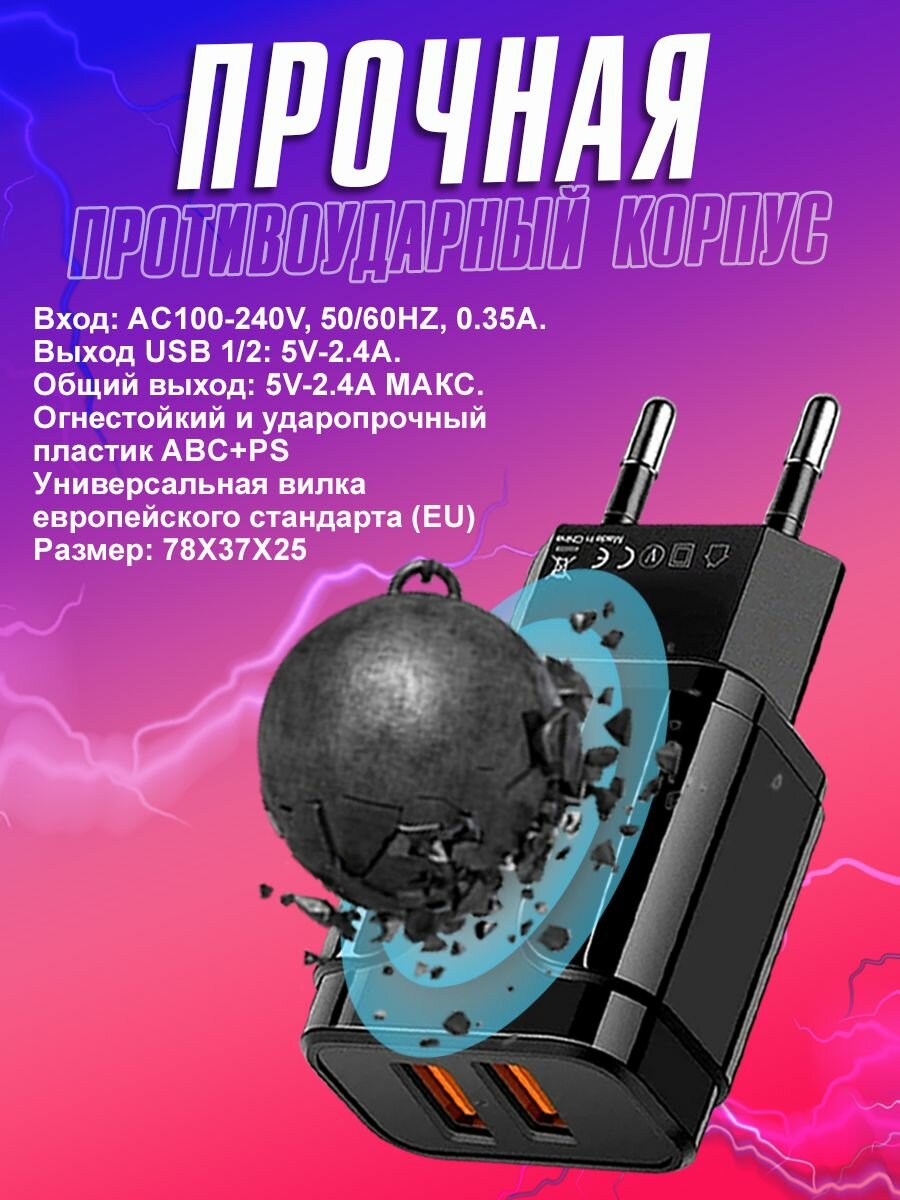 Отзывы на Сетевое зарядное устройство для телефона 2USB х 2.4A / блок питания / сетевой адаптер / цвет черный