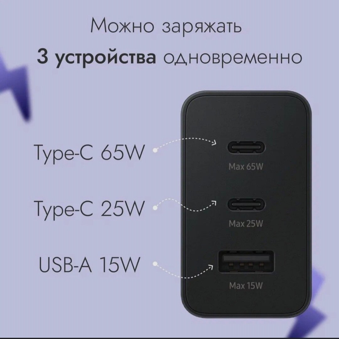Зарядное устройство для Samsung 65w + кабель USB Type C/ быстрая зарядка для Samsung 65w (вт) с проводом/ Сетевой адаптер usb c информация:
