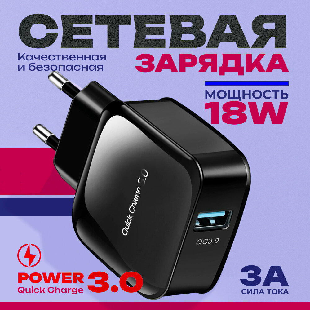 Быстрое зарядное устройство для смартфона, QC3.0, сетевой адаптер для телефона 18W, блок питания, черный информация: