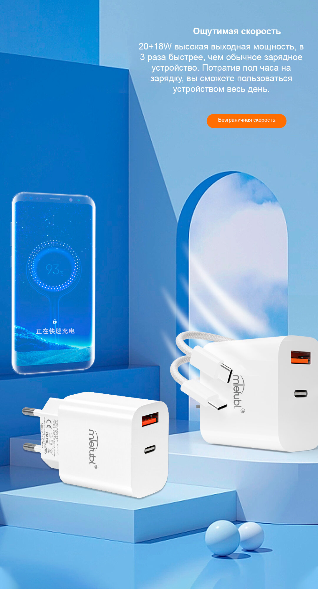 | Дополнительная информация | Выход: PD 20W + QC3.0(18W); Выходная мощность: 5V3A, 9V2A, 12V1.5A, TYPE-C: 5V3A, 9V2A, 12V1.5A; Вход: 100-240V~50/60/Гц 0.6A; Материал корпуса: PC огнеупорный материал. |