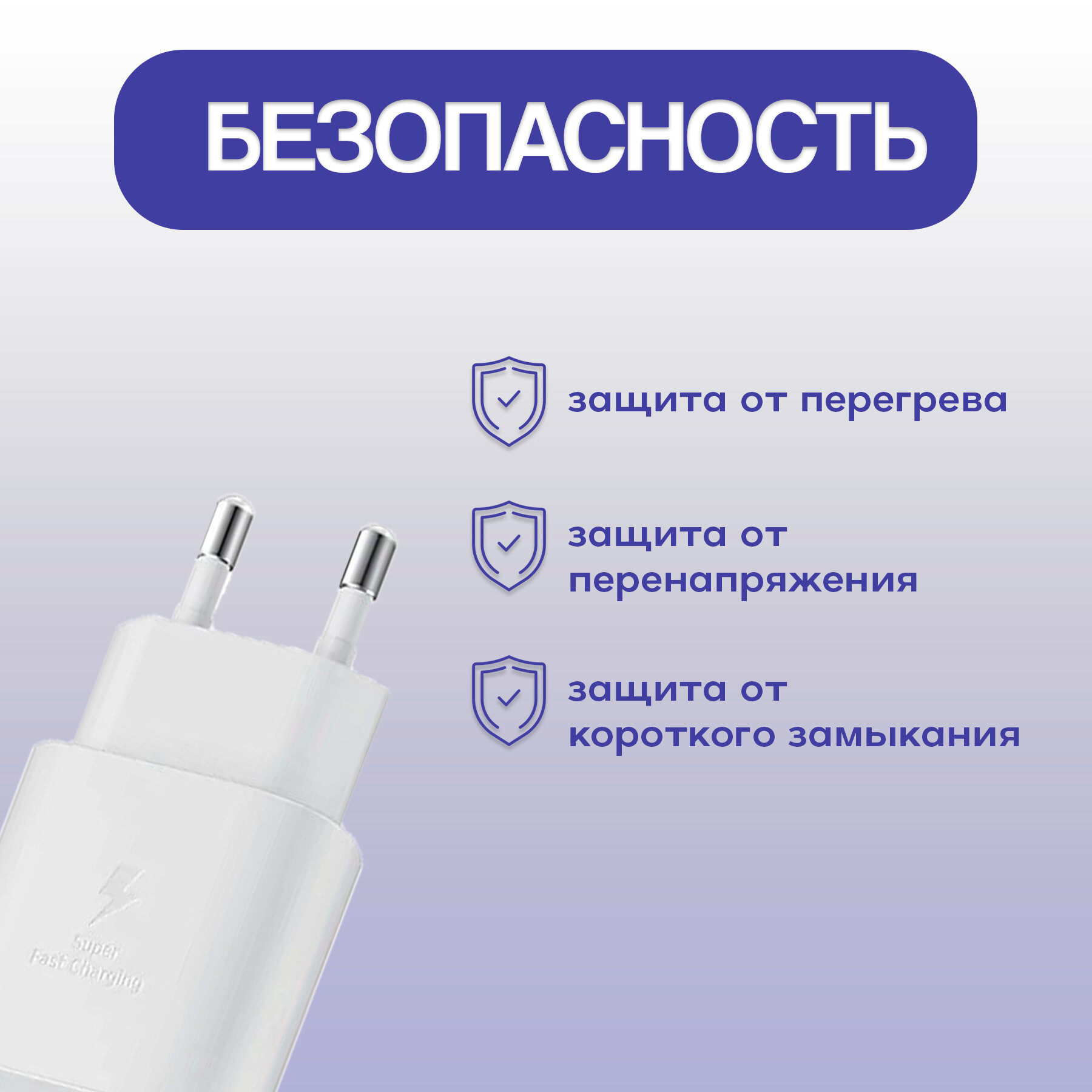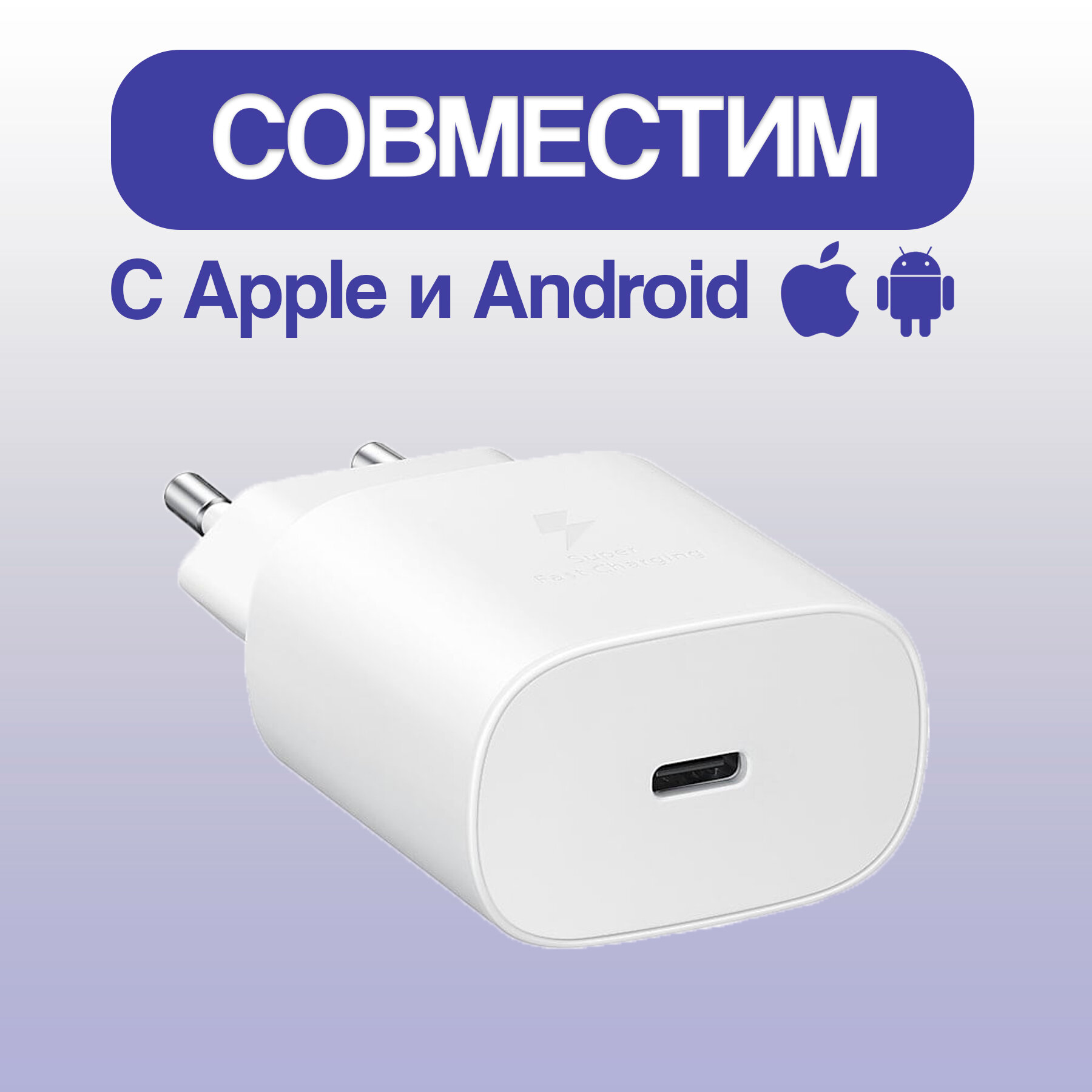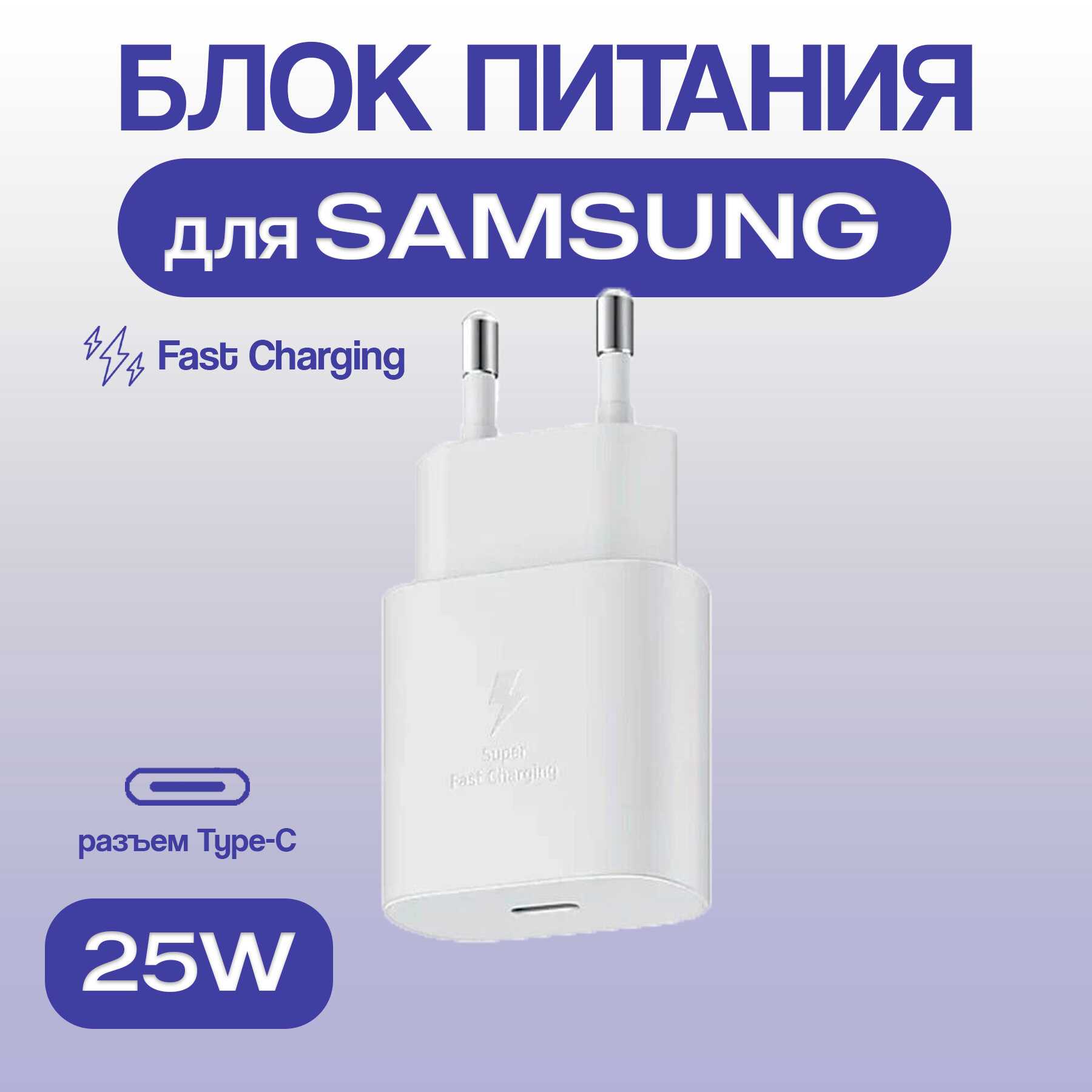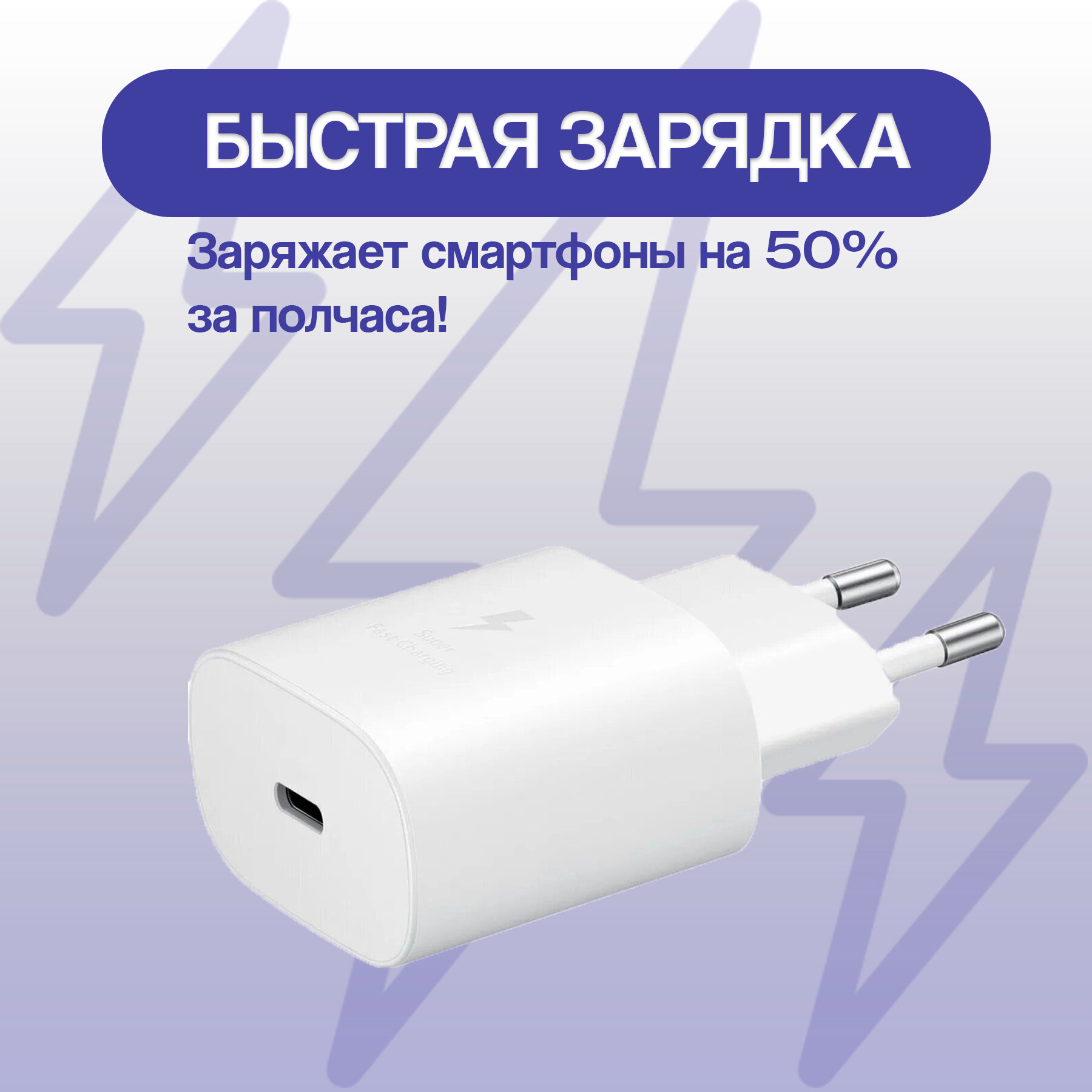 Сетевое зарядное устройство (Super Fast Charging) для Samsung TA800 Type-C 25W белый (тех. упаковка) информация: