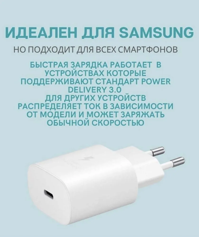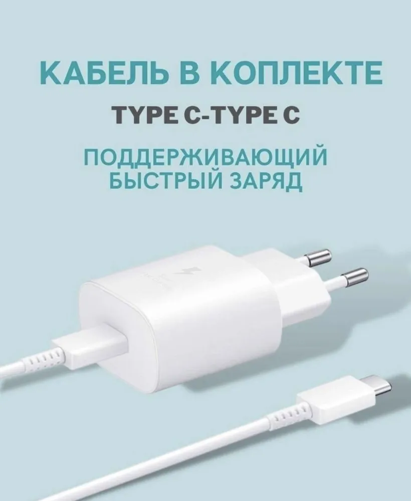 Отзывы на Зарядное устройство для Samsung с кабелем Type-C, мощность 25Вт, белый
