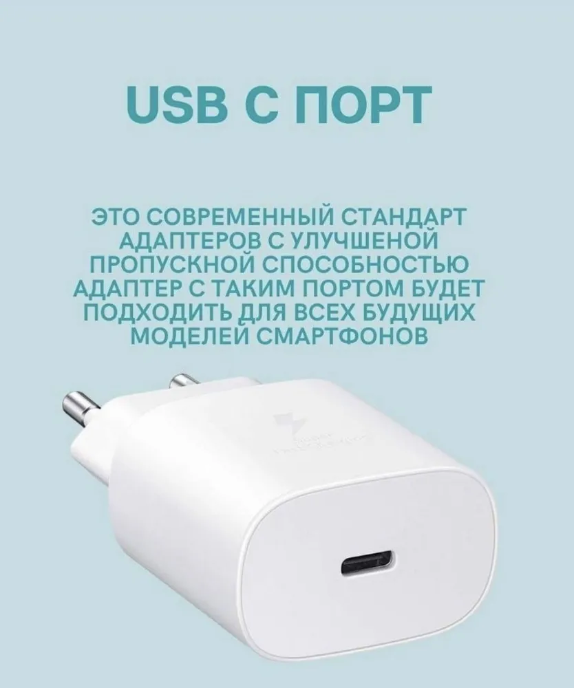 Зарядное устройство для Samsung 45w + кабель USB Type C/ быстрая зарядка для Samsung 25w (вт) с проводом/ Сетевой адаптер usb c