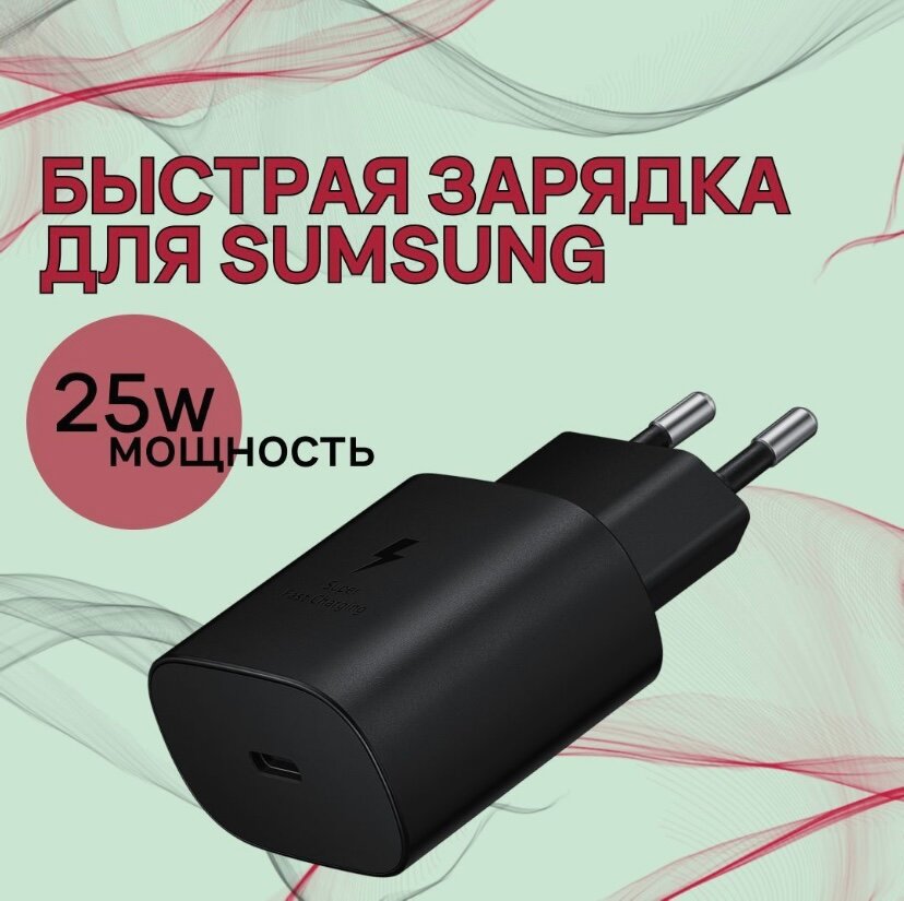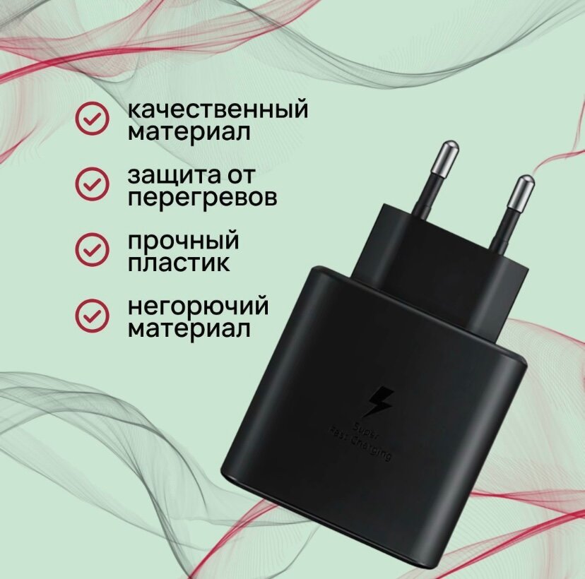 Отзывы на Зарядное устройство для Samsung с кабелем Type-C, мощность 25Вт, черный