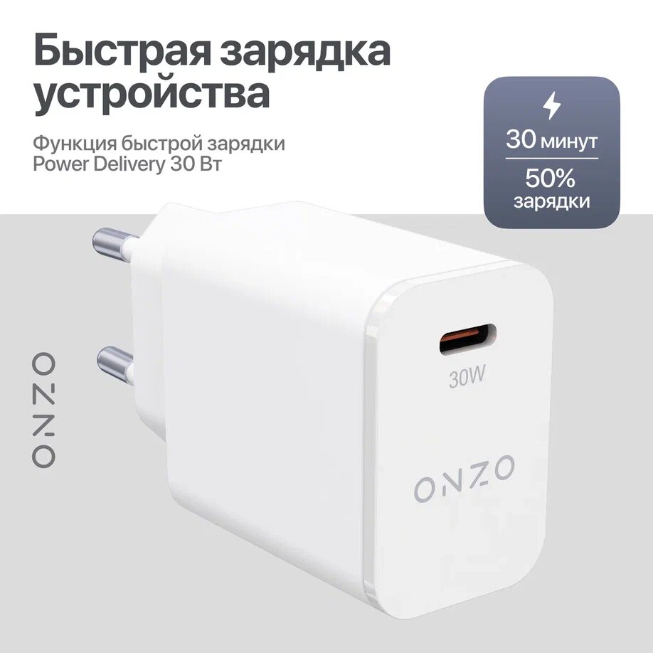 Зарядник для iPhone с функцией быстрой зарядки, 30W / Комплект: Адаптер + Кабель USB-C/Lightning, 1м информация: