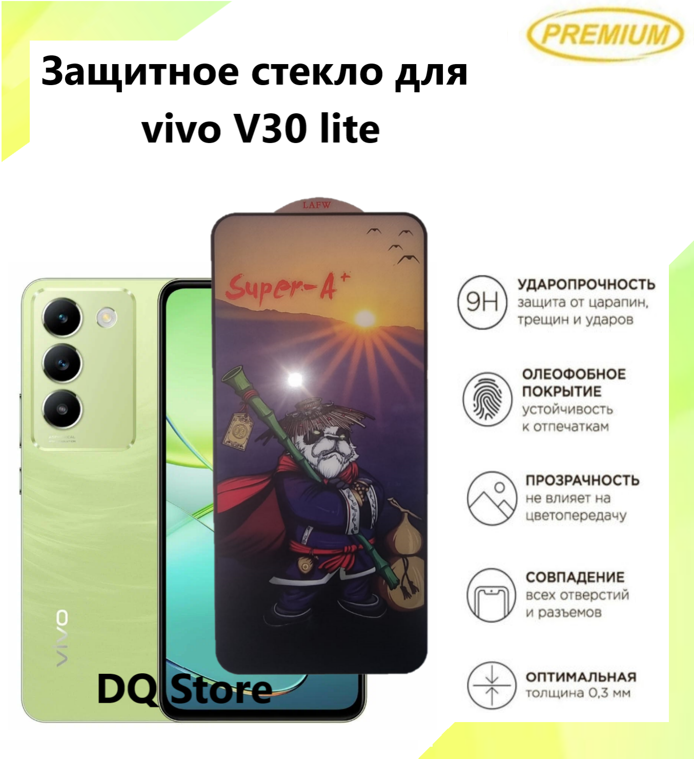 Защитное стекло на vivo V30 lite / виво В30 Лайт . Полноэкранное защитное стекло с олеофобным покрытием Premium информация: