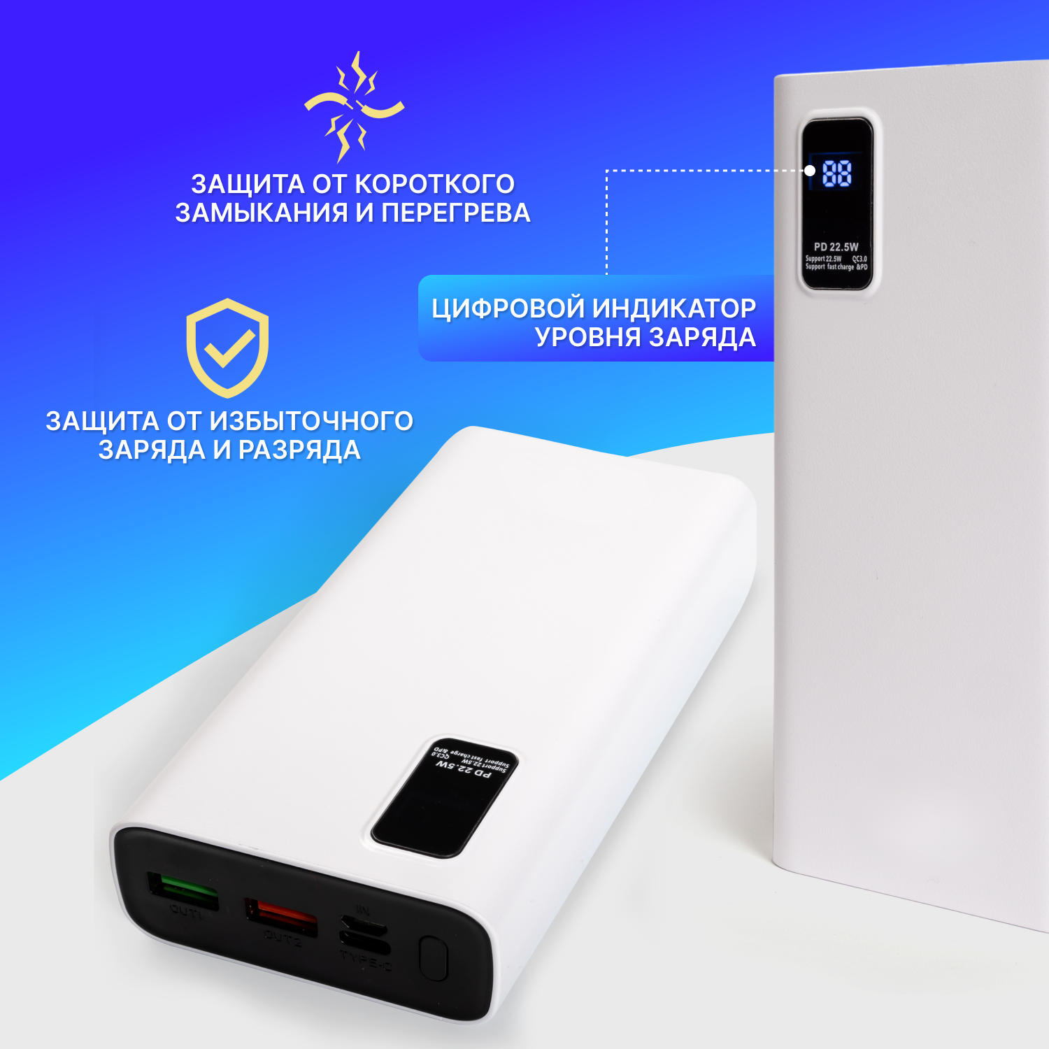 Повербанк (power bank) 20000mah с быстрой зарядкой, внешний аккумулятор для телефона iPhone, Xiaomi, Samsung, белый информация: