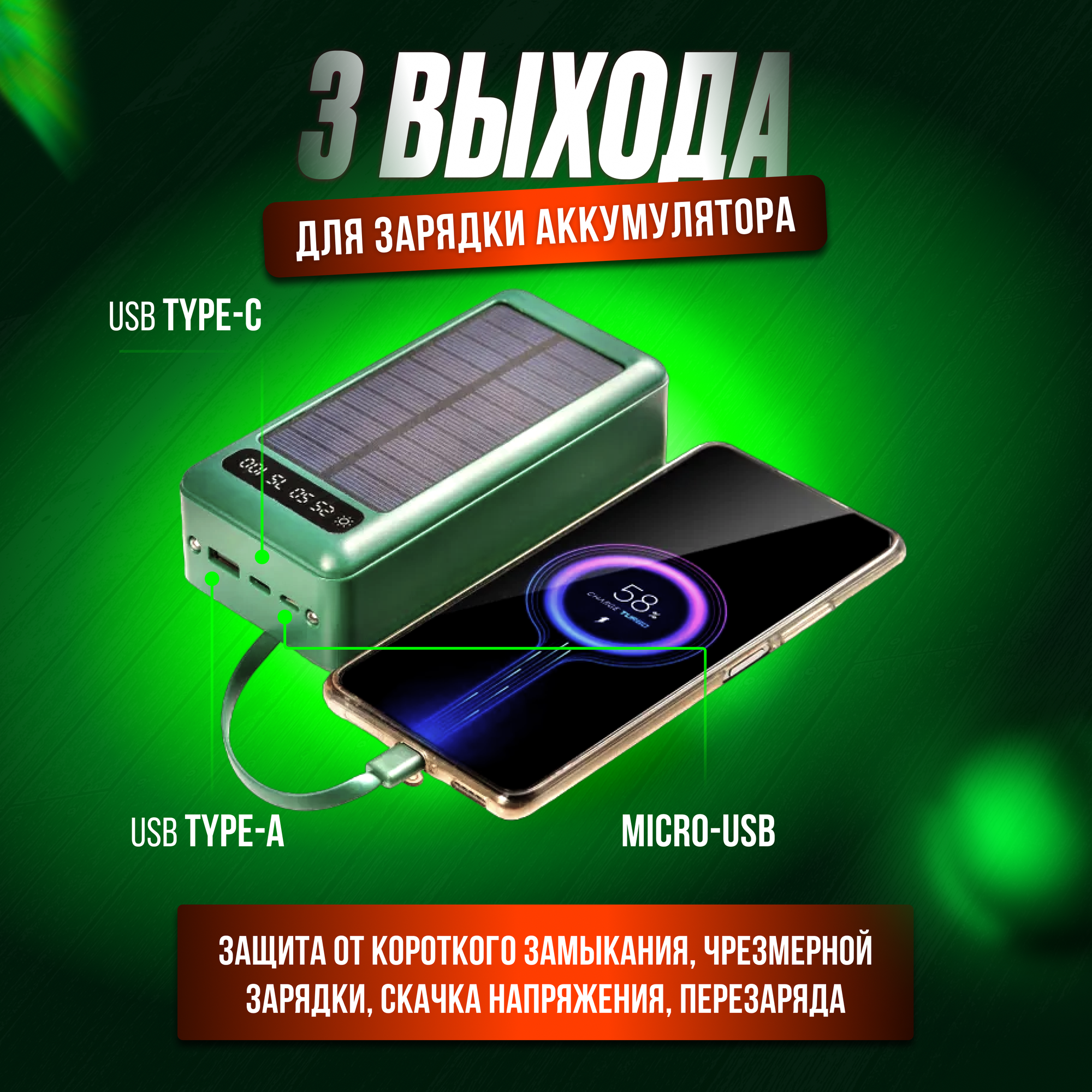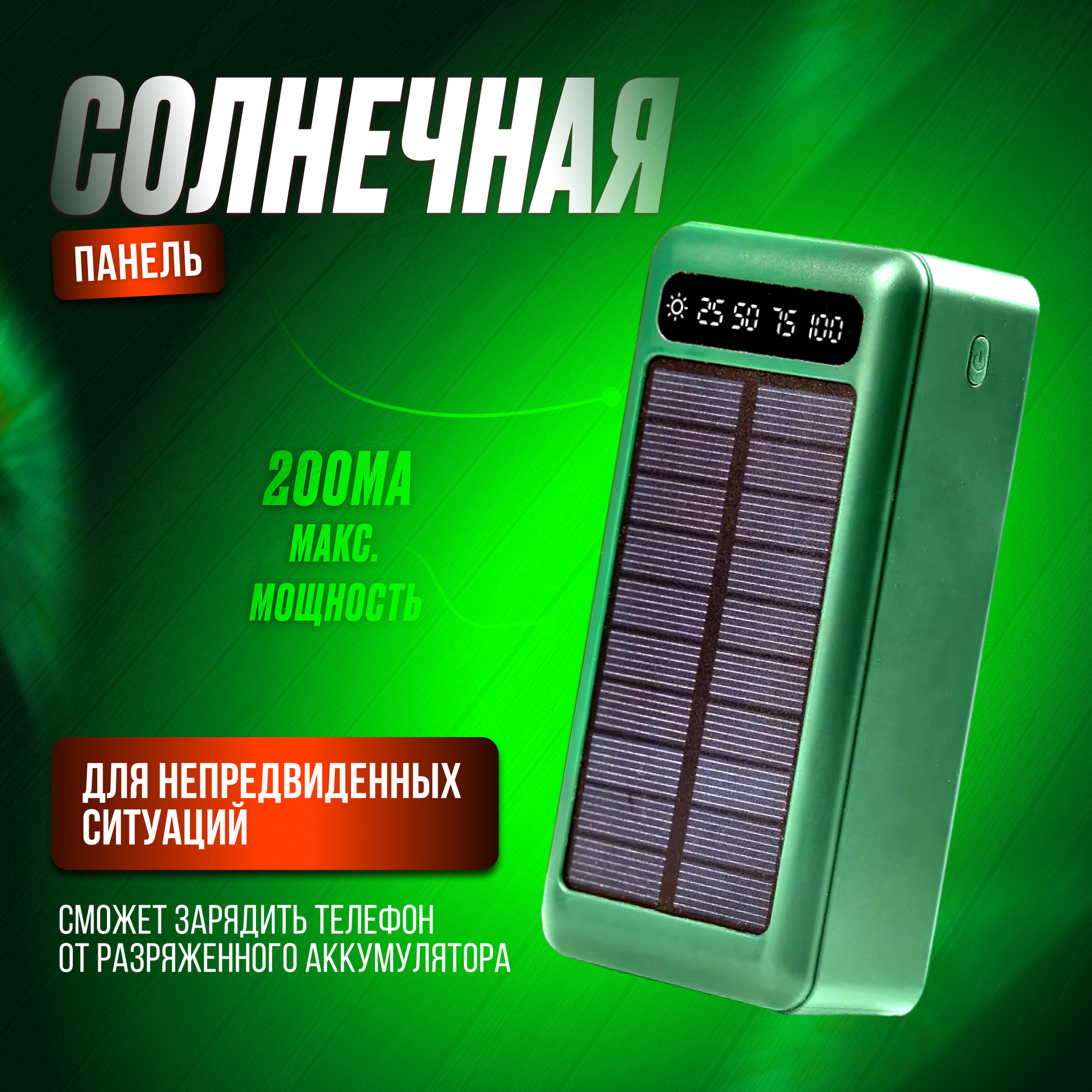 Отзывы на Внешний аккумулятор OiShop 50000 mAh для телефона aйфона iphone android windows / зарядное устройство повербанк / power bank с солнечной батареей зеленый