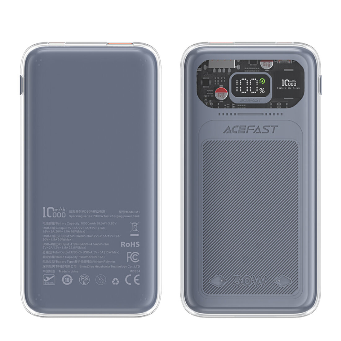 Универсальный Доп. Аккумулятор 10000mAh, M1, ACEFAST, выход: 1 PD (30W) 1 USB (22.5W), серый информация: