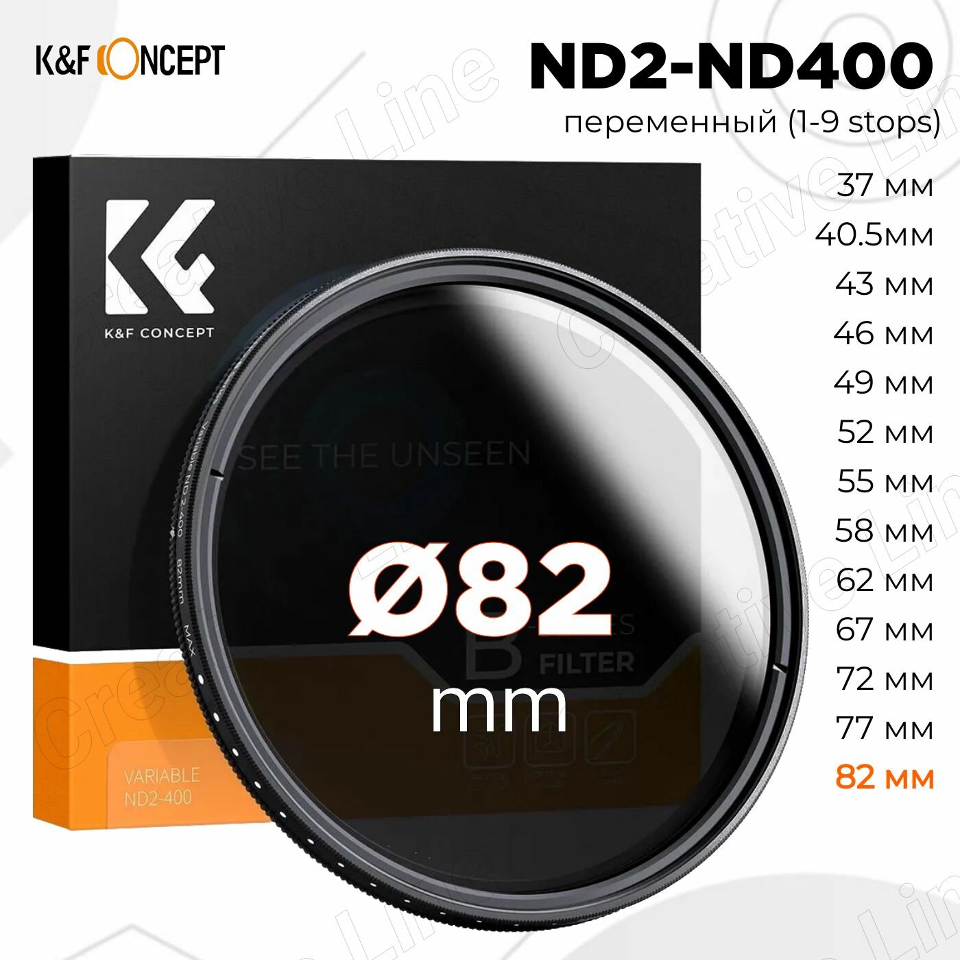 10 цен на K&F Concept Variable ND2-ND400 / 82mm / Переменный нейтральный фильтр