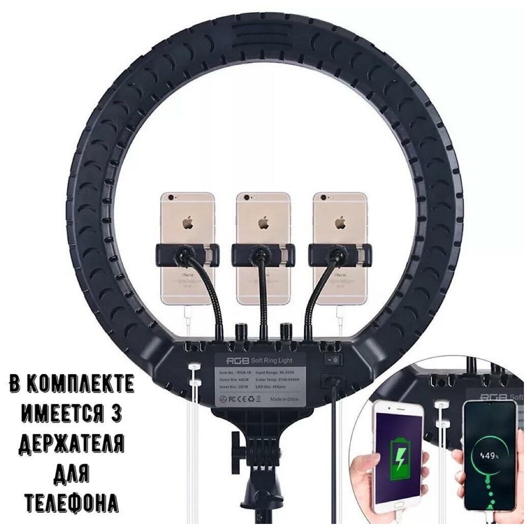 Профессиональная кольцевая лампа 45 см с усиленным штативом LED RL-18. Кольцевая лампа с пультом управления, сумкой для переноски и усиленным штативом 4 490 ₽