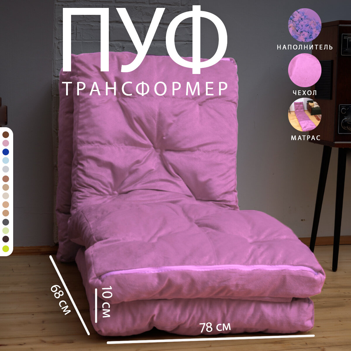 Отзывы на Пуф раскладушка Bubble Bag 70х80х40 см трансформер матрас из натурального велюра раскладной 4 блока Темно-розовый