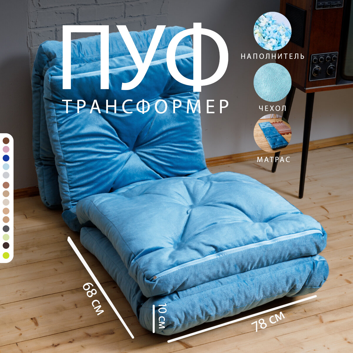 Отзывы на Пуф раскладушка Bubble Bag 70х80х40 см трансформер матрас из натурального велюра раскладной 4 блока Голубой