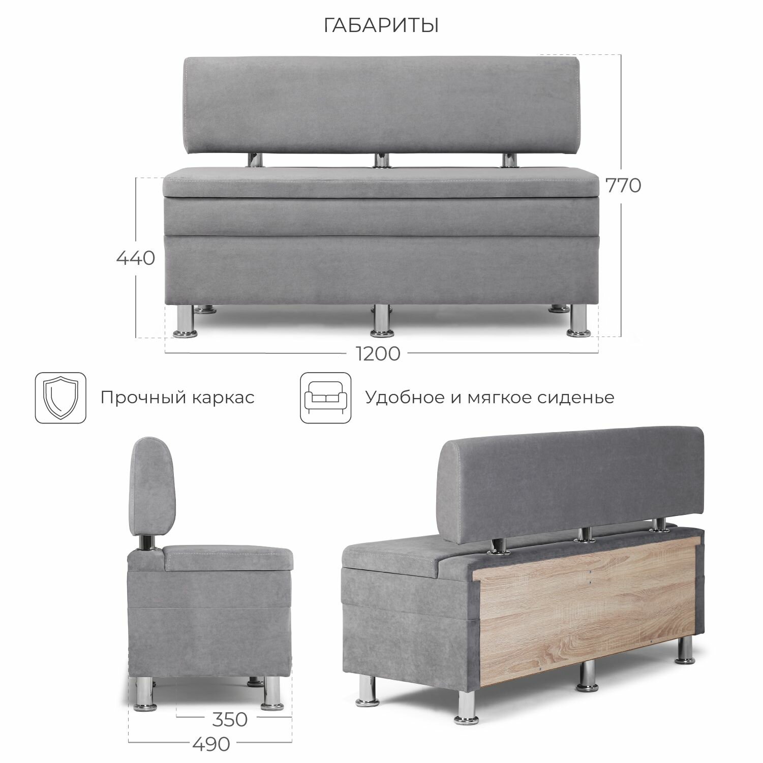 Диван на кухню, прямой, на балкон, в прихожую норта Hippo 1200х490х770 c ящиком для хранения, серый информация:
