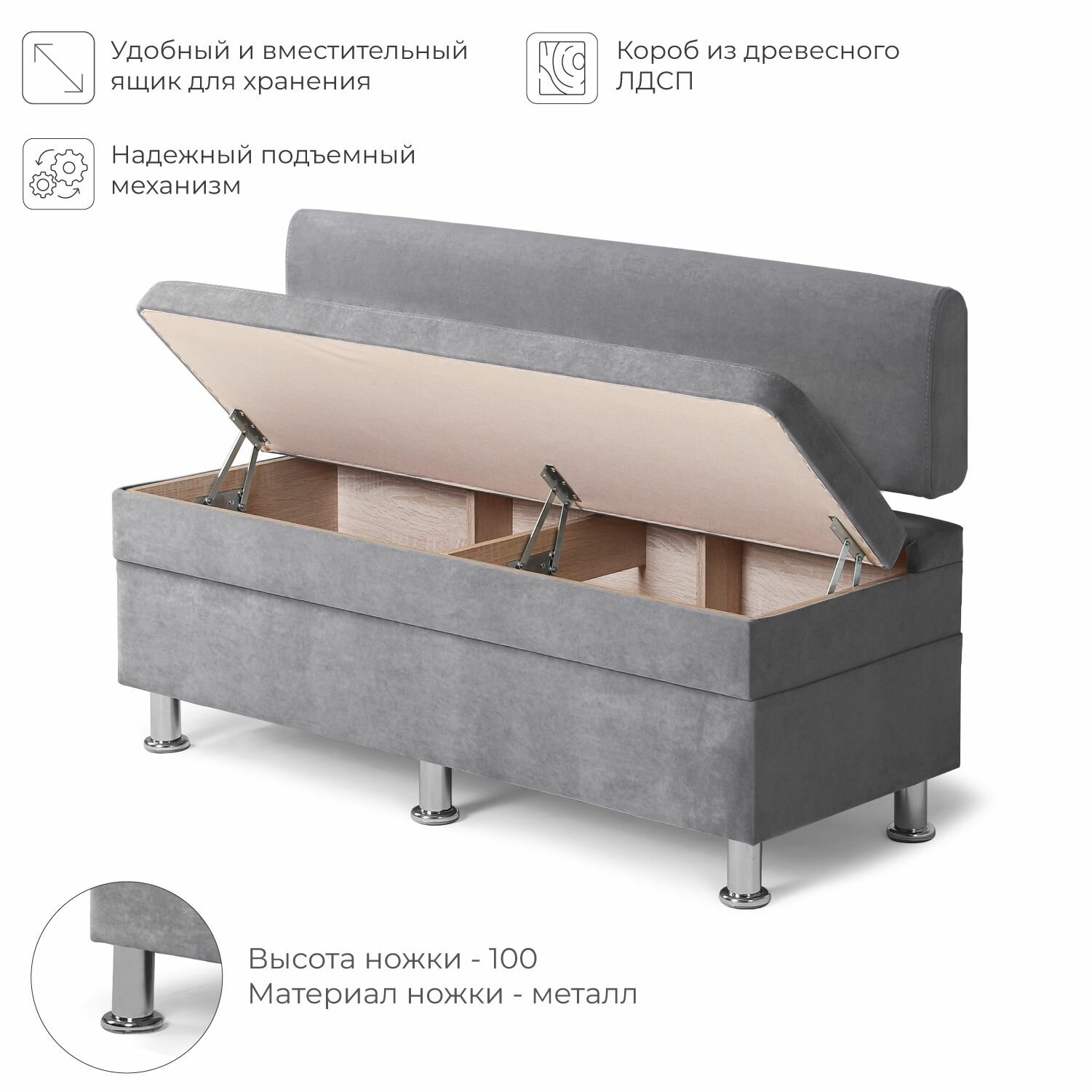 10 цен на Диван на кухню, прямой, на балкон, в прихожую норта Hippo 1200х490х770 c ящиком для хранения, серый