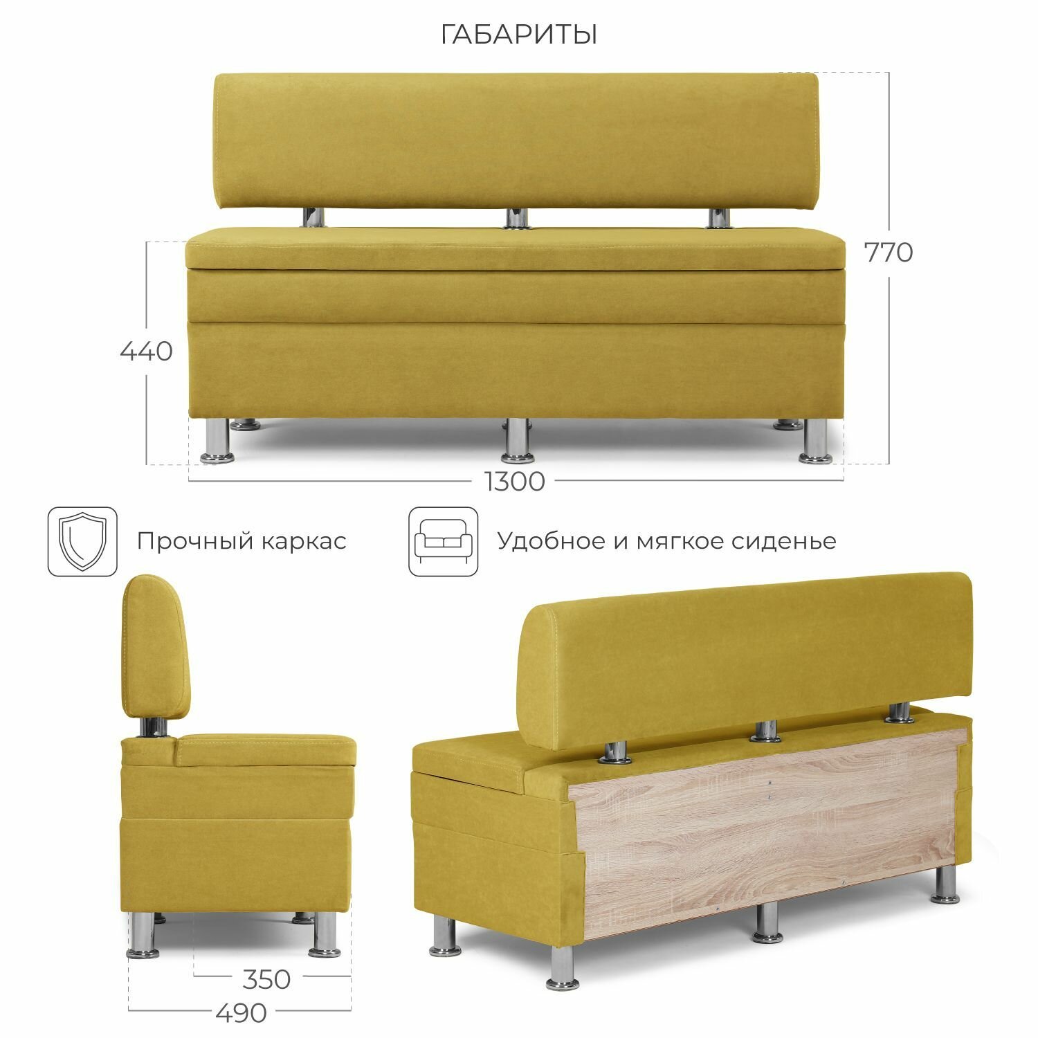 Диван на кухню, прямой, на балкон, в прихожую норта Hippo 1300х490х770 c ящиком для хранения, горчичный информация: