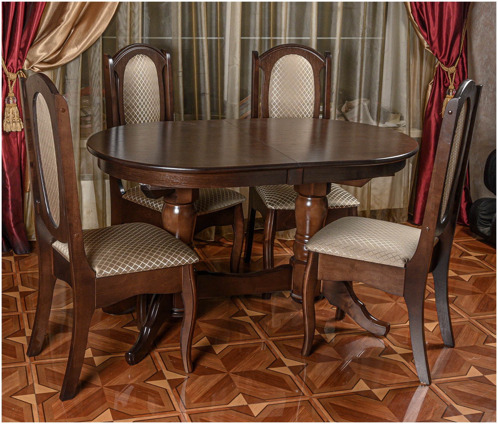 Обеденная группа Президент-2, стол 80х130(170) и 4 деревянных стула (темный орех, вензель)