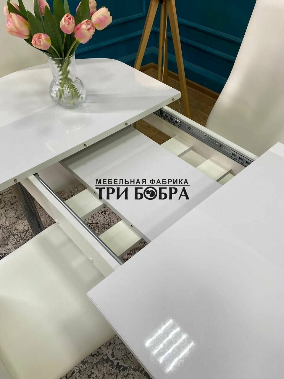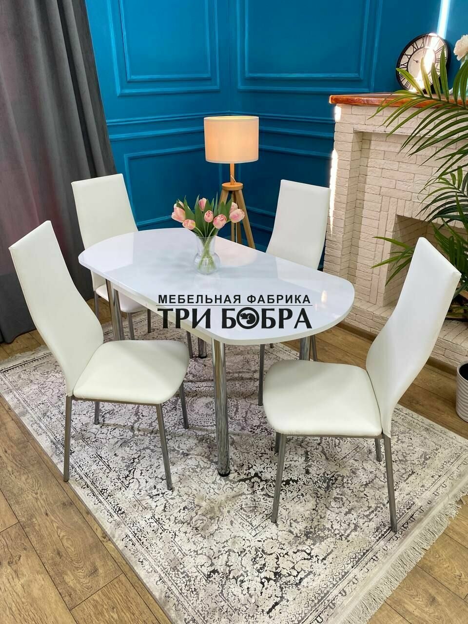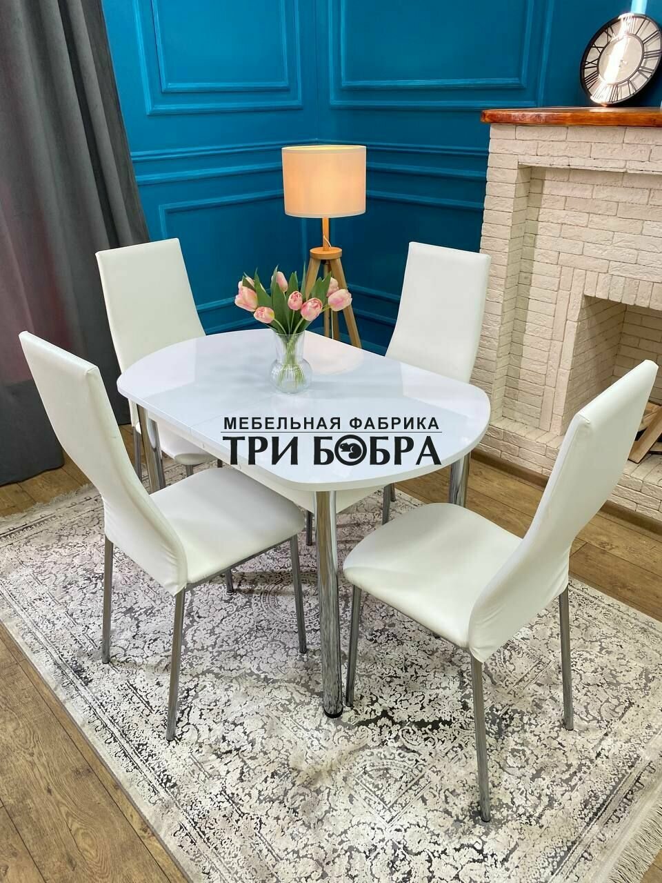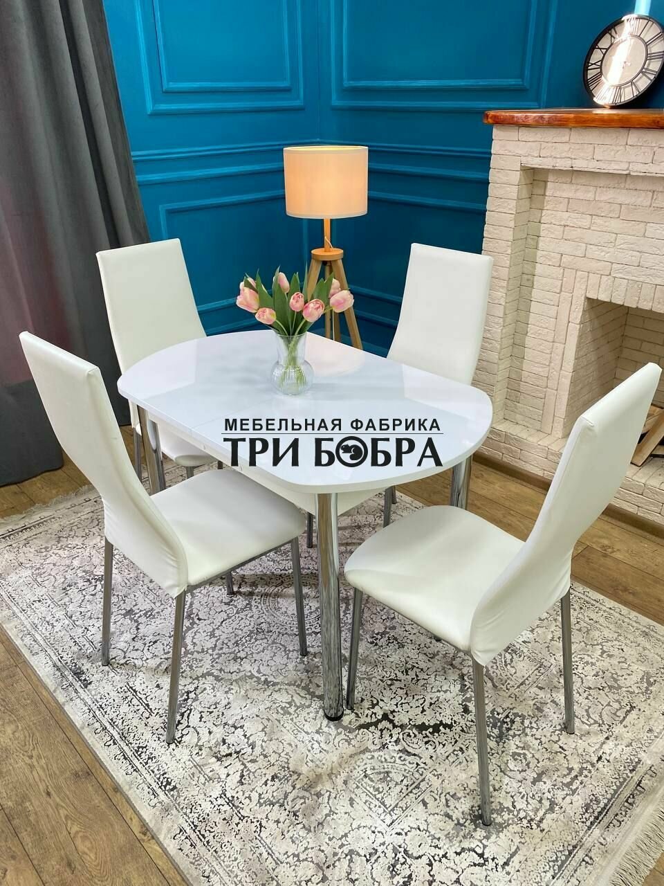 Отзывы на Стол кухонный, стулья для кухни комплект 4 шт, ТРИ бобра, Белый глянец, раздвижной, 110х70х75 см