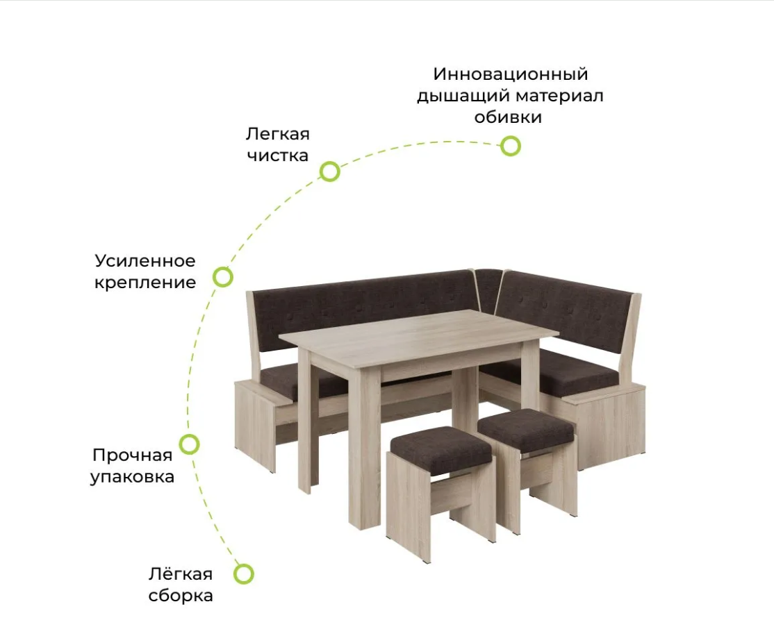 Кухонный уголок Торонто, Дуб Сонома/ТК Коричневая 177х137х79,5 см информация: