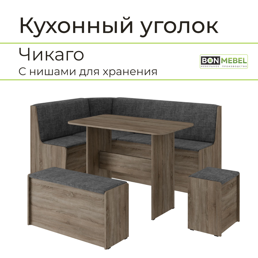 Кухонный уголок Чикаго BONMEBEL Дуб сонома трюфель/ТК серый, 159х109,8х79,8 см информация: