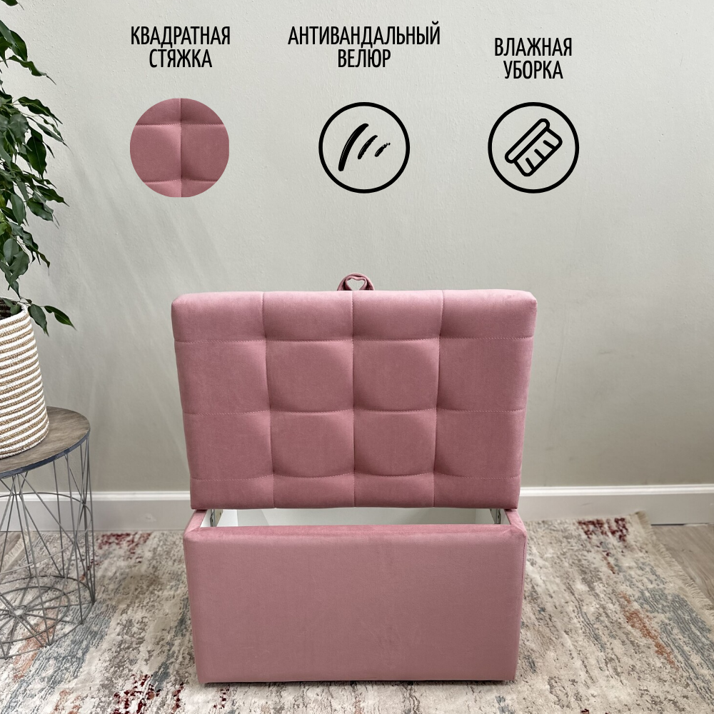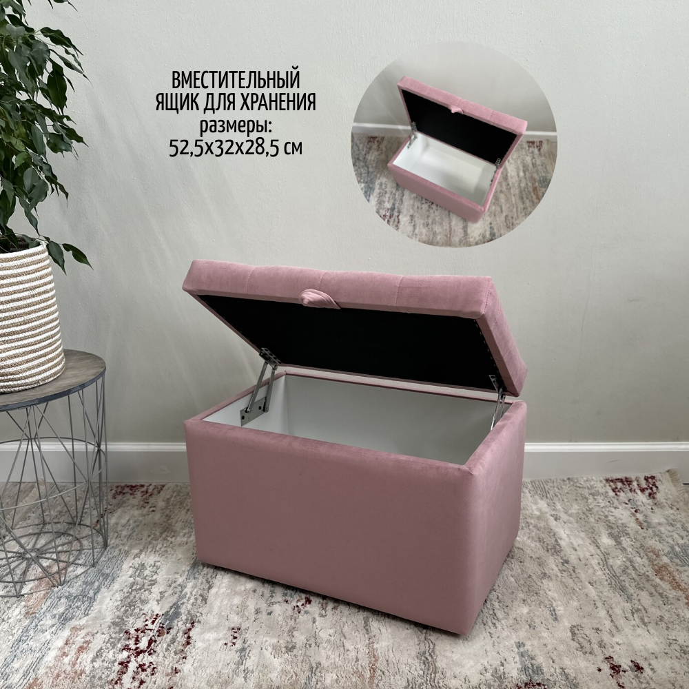 Пуфик в прихожую спальню с ящиком для хранения, 58х38х38, розовый информация: