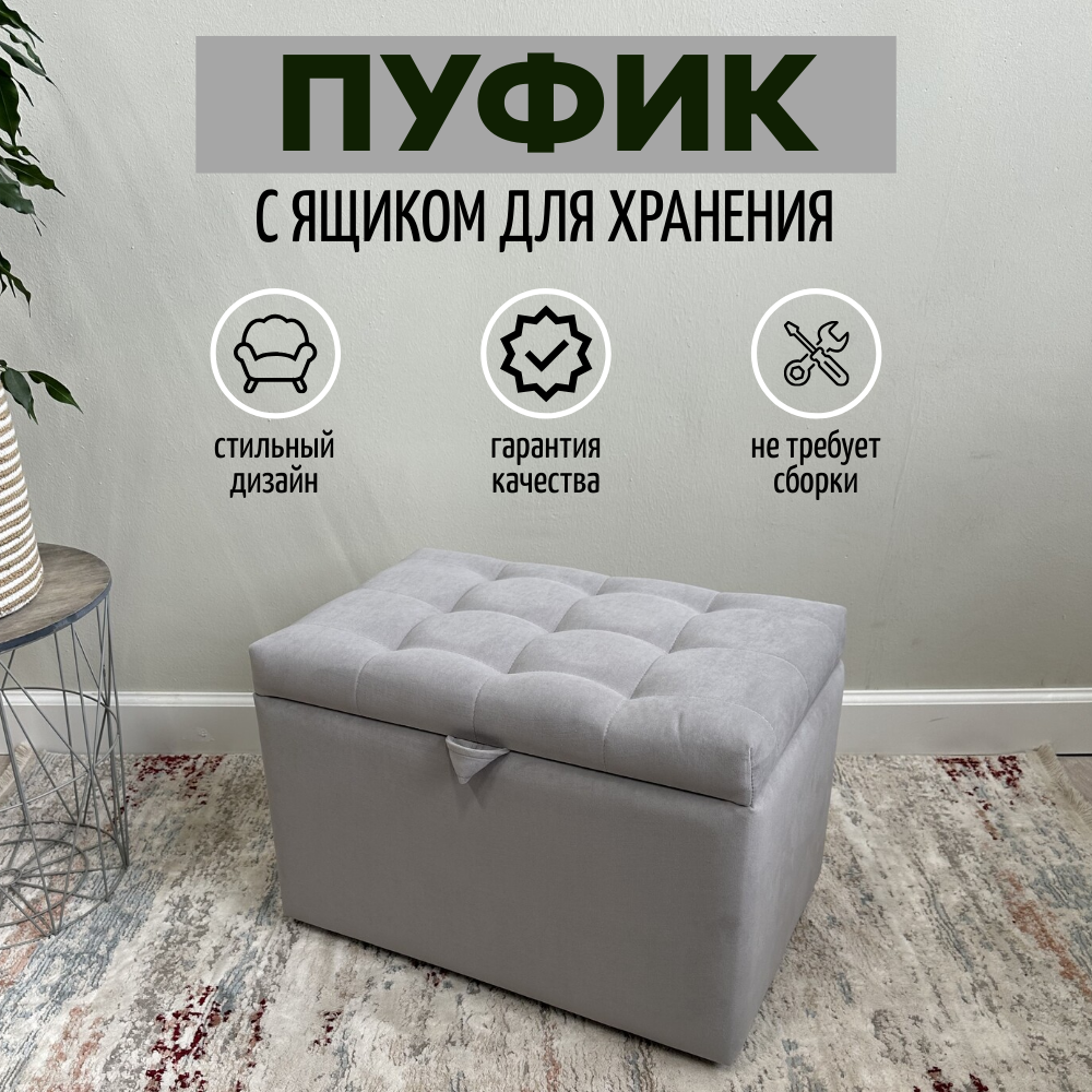 Отзывы на Пуфик в прихожую спальню с ящиком для хранения, 58х38х38, светло-серый
