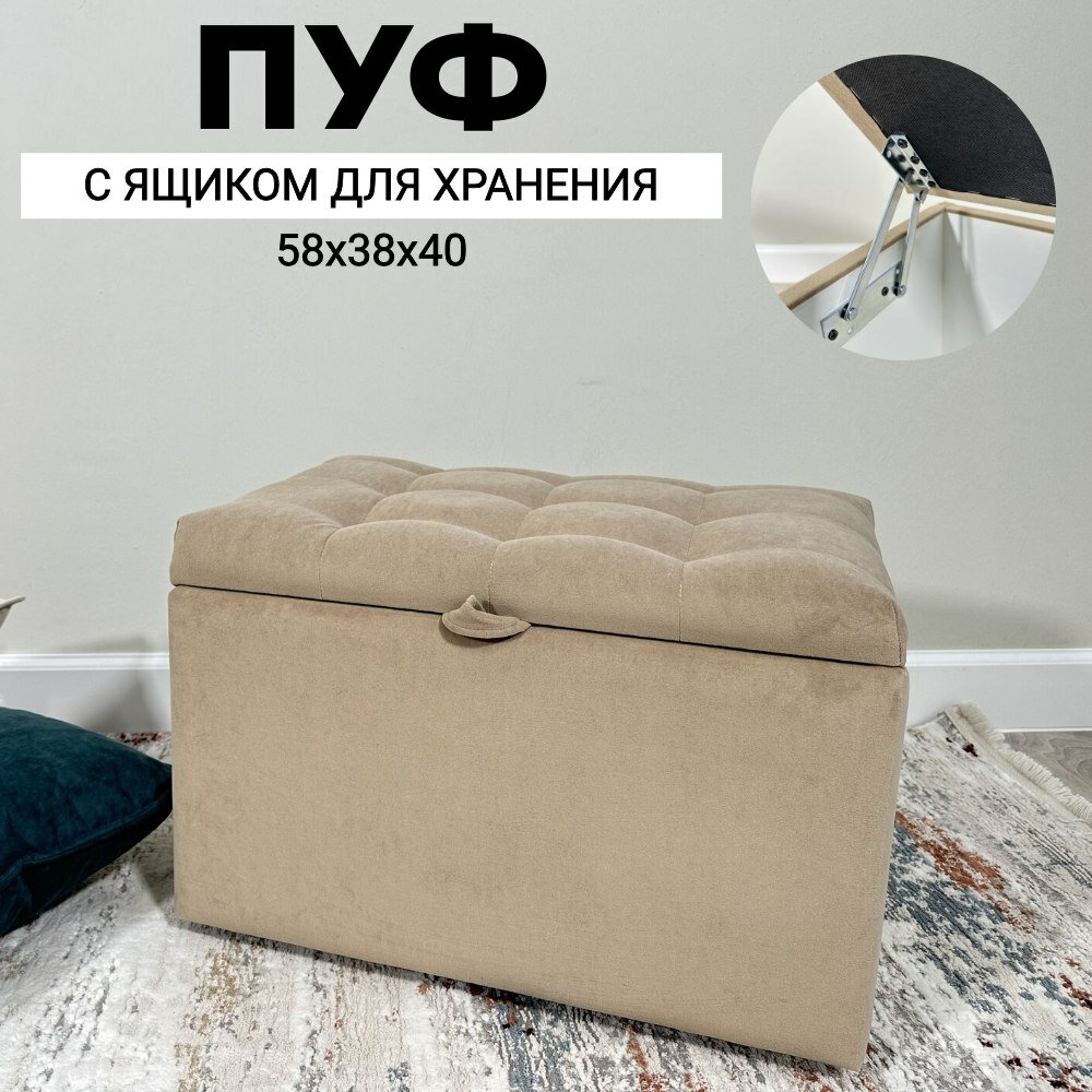Пуфик в прихожую спальню с ящиком для хранения, 58х38х38, темно-бежевый информация: